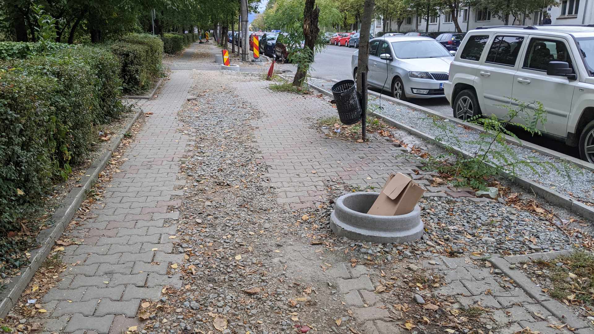 Cum e organizarea de șantier pe traseul Liniei Verzi? Fire au fost lăsate să atârne peste tot, guri de canal neastupate prin care s-au strecurat gunoaie și riscă oricând să cadă cineva, dale folosite pentru pavare lăsate de izbeliște. MuncitoriI MIS Grup au fost surprinși în timp ce își făceau nevoile în curțile oamenilor pe traseul Liniei Verzi pentru că în zonele unde lucrau n-au fost amplasate toalete ecologice.