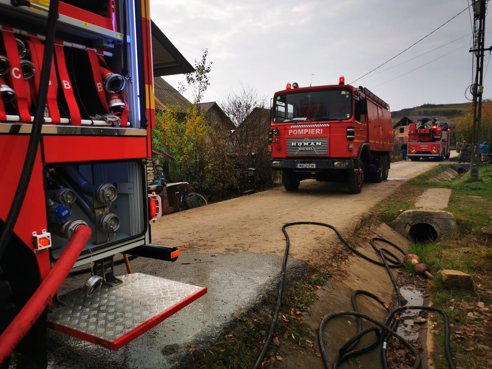 În urma apelului la 112, au fost mobilizate trei autospeciale de stingere, un echipaj de prim ajutor SMURD și un echipaj de pompieri militari de la Detașamentul de Pompieri Bistrița. Au sărit în ajuntor și voluntarii Serviciului Voluntar pentru Situații de Urgență.