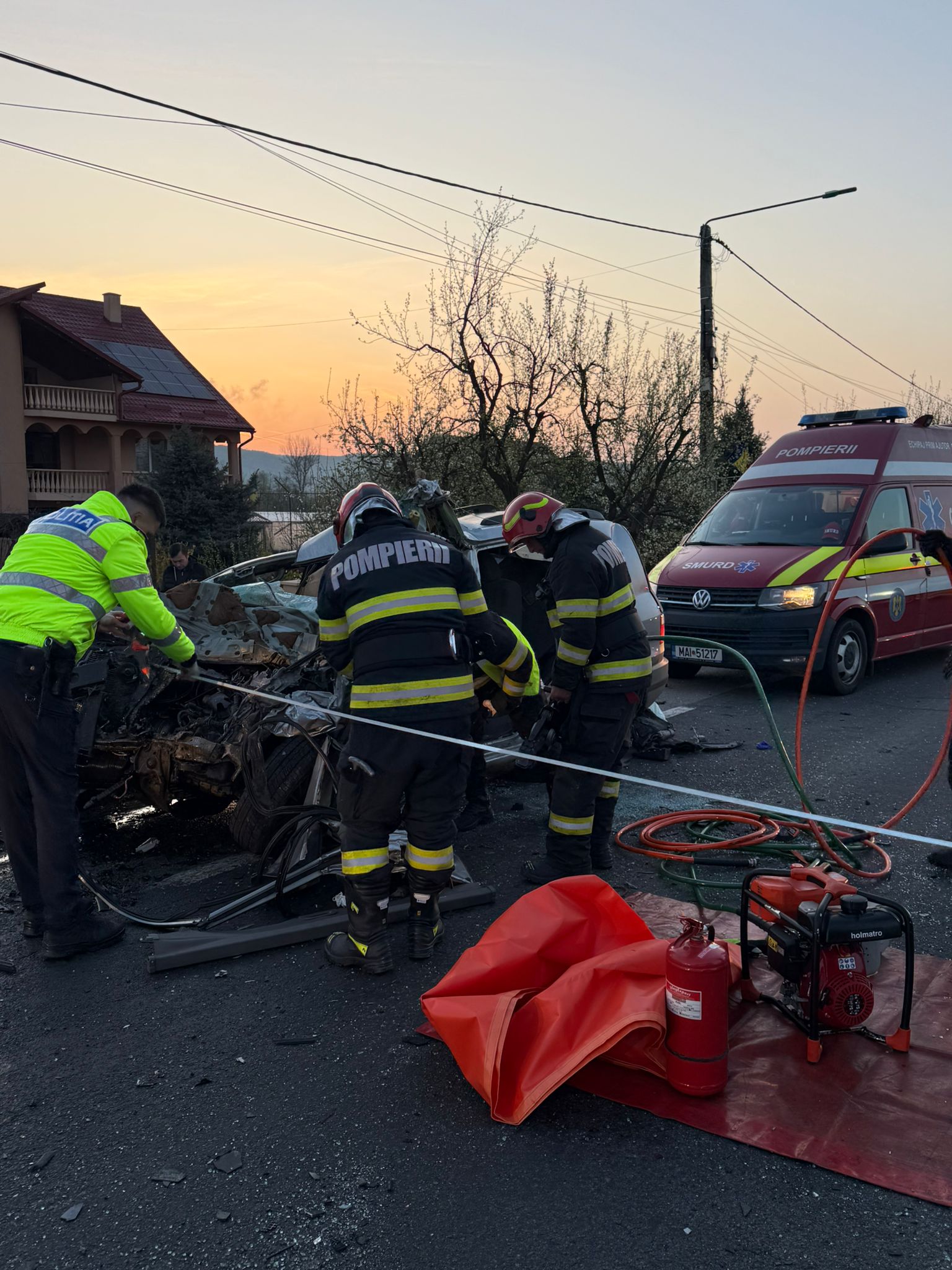 „Victima încarcerată a fost extrasă de către pompierii. Din păcate, a fost declarat decesul la locul solicitarii – bărbatul in varsta de 47 de ani prezenta leziuni incompatibile cu viața.