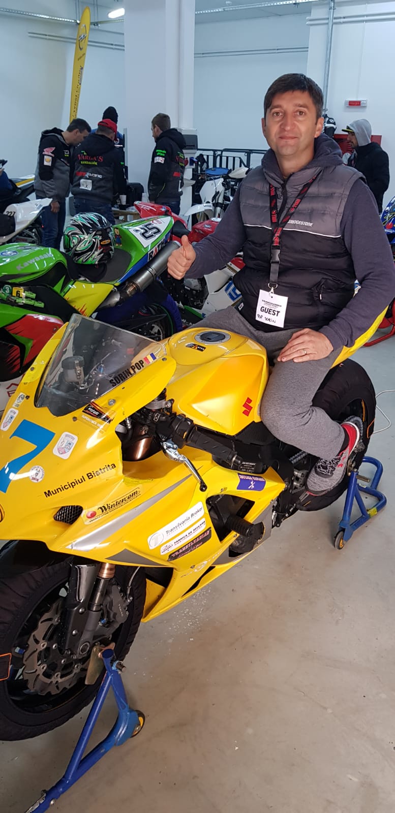 Printre cei care vor testa circuitul, va fi și bistrițeanul Sorin Pop (foto motocicletă galbenă). Acesta a fost invitat de Consiliul Județean Mureș și este cel ce reprezintă Bistrița la Campionatul Național de Motociclism.