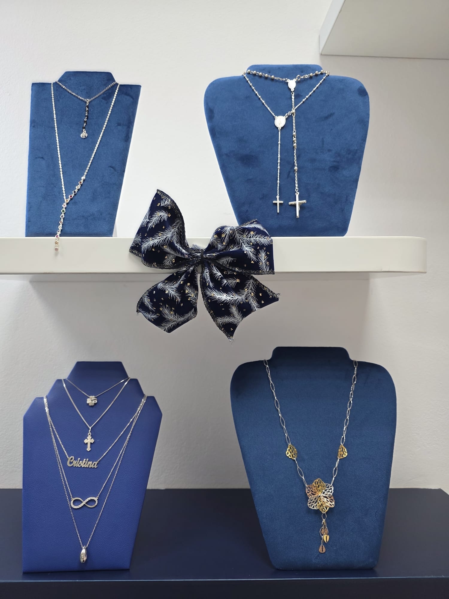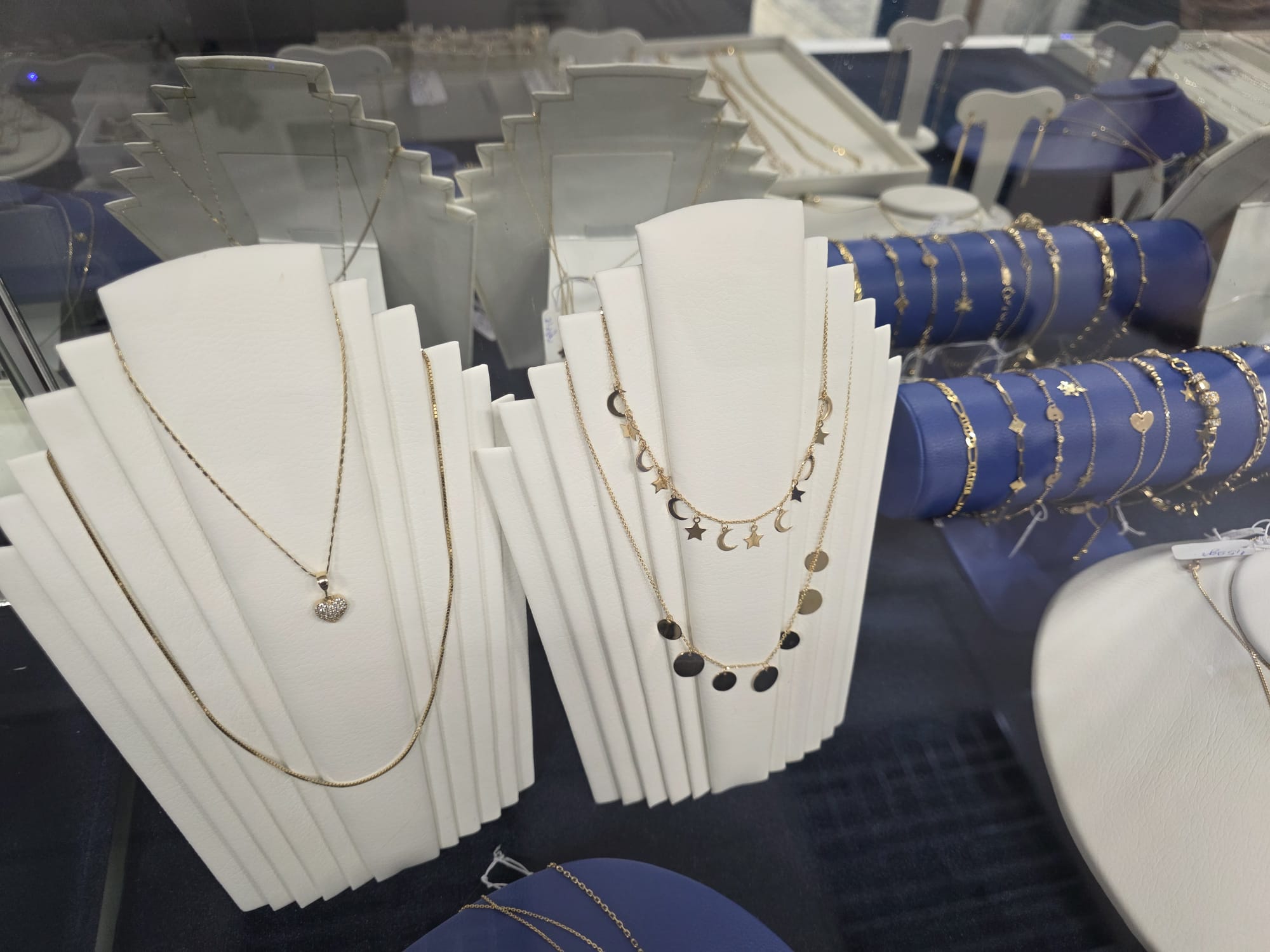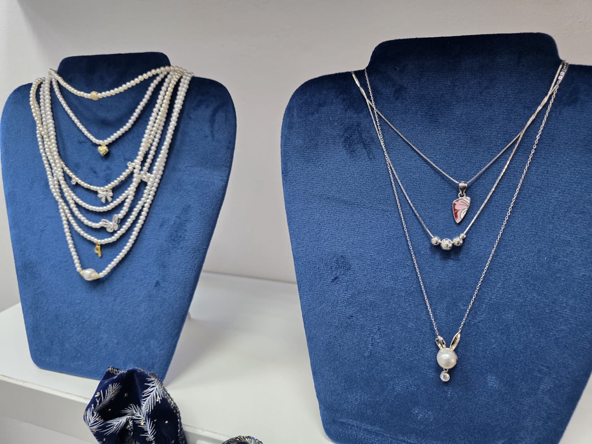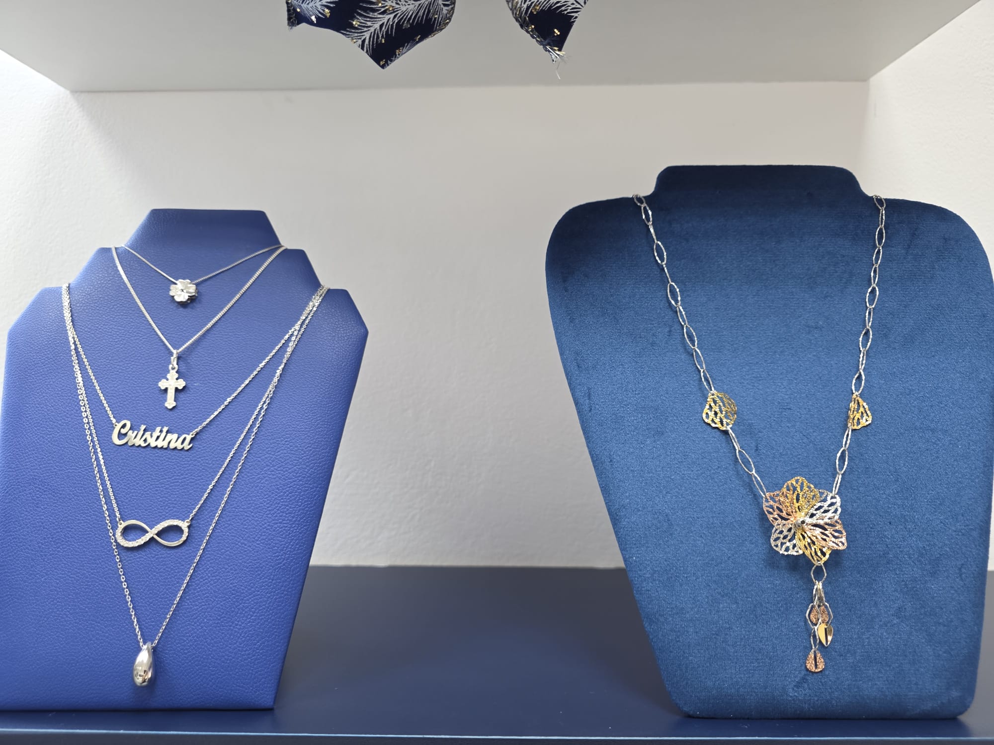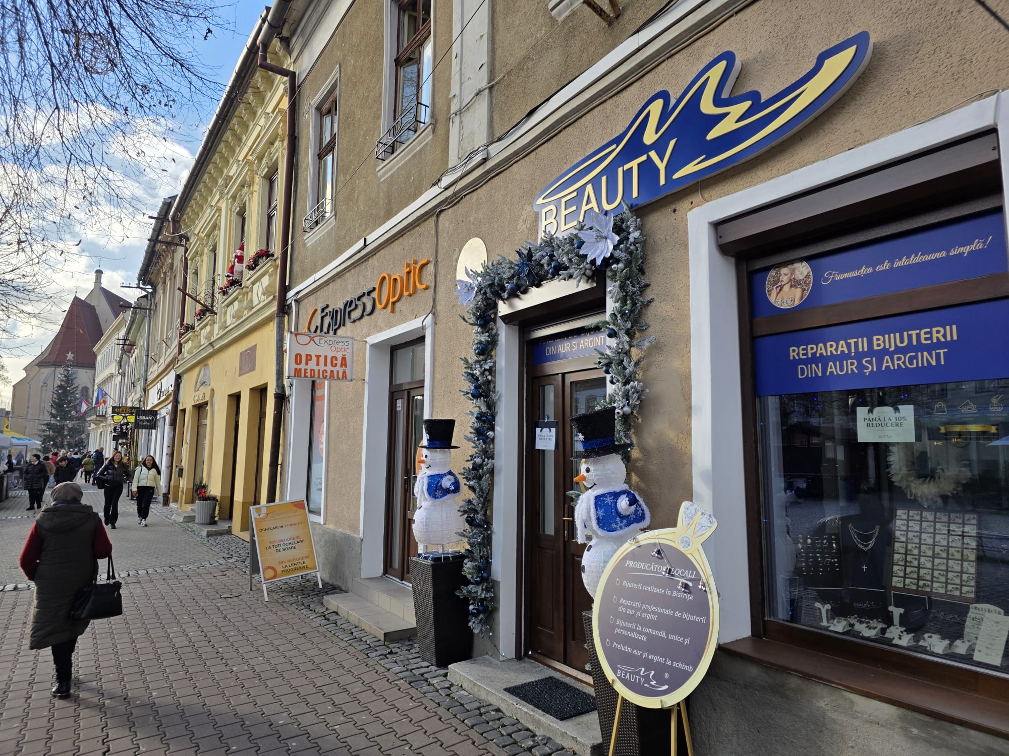 În saloanele lor de bijuterii din Bistrița, unul situat în Centrul Vechi, nr. 11, și celălalt pe Sugălete, nr. 16, găsiți o gamă impresionantă de bijuterii, atât pentru doamne, cât și pentru domni: inele, verighete, cercei, lănțișoare și pandantive, seturi complete, cu cercei și pandantiv, unele chiar și cu inel, dar și bănuți din aur și argint. Iar prețurile sunt mai mult decât decente, de producător.