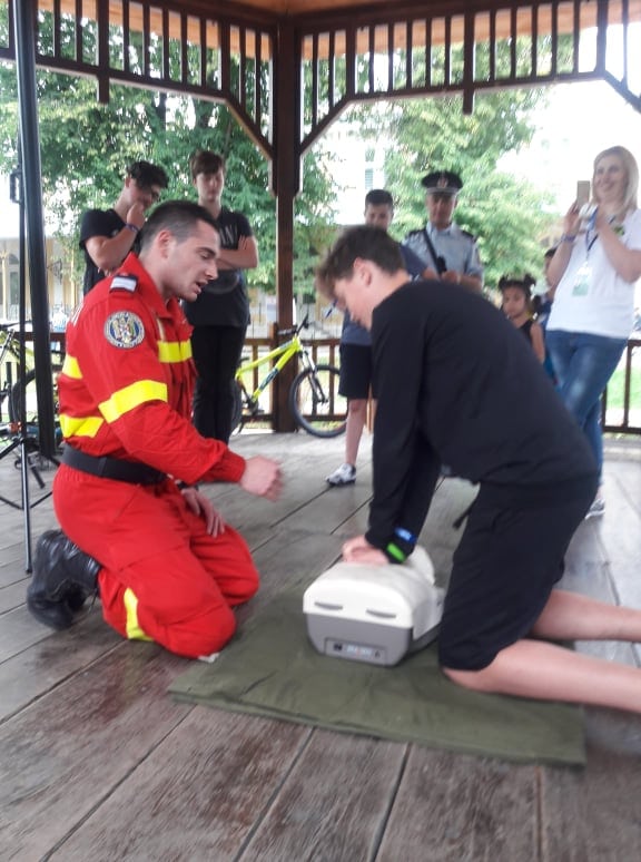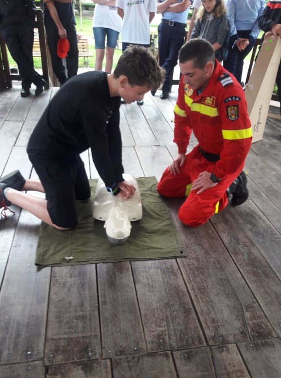 Una dintre activități a constat în predarea lecției de „oferire prim ajutor” unei persoane ce o vezi căzută pe stradă.