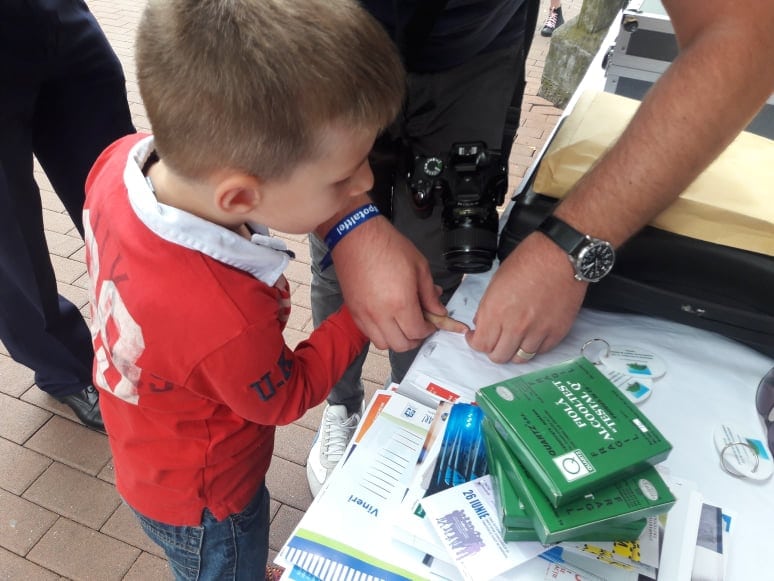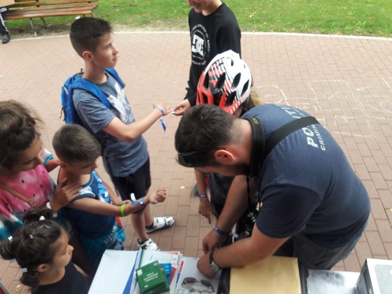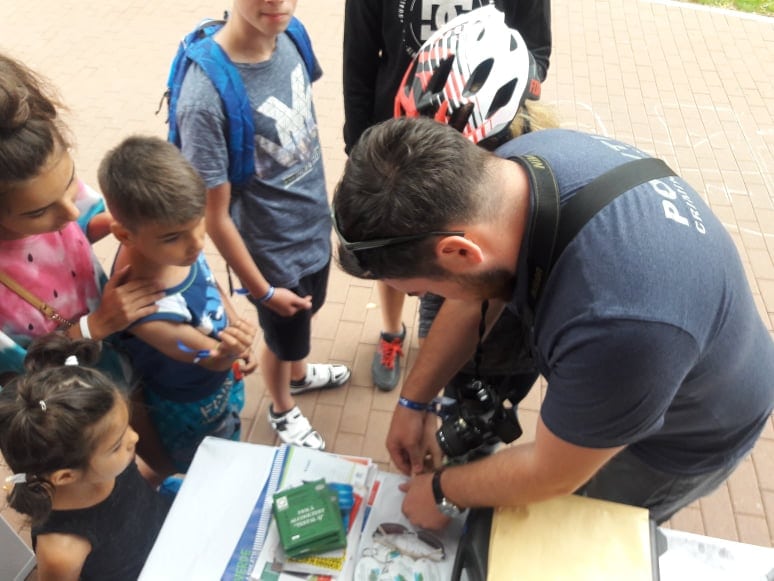 Copiii s-au bucurat de baloane, muzică, pliante și brelocuri. S-au distrat în timp ce criminaliștii le luau amprentele sau câinii jandarmilor își demonstrau abilitățile.