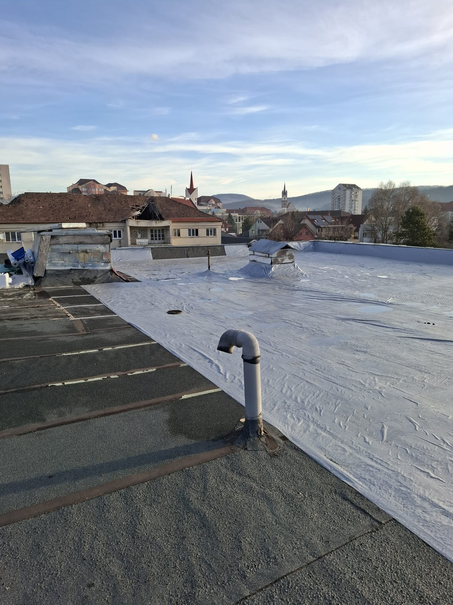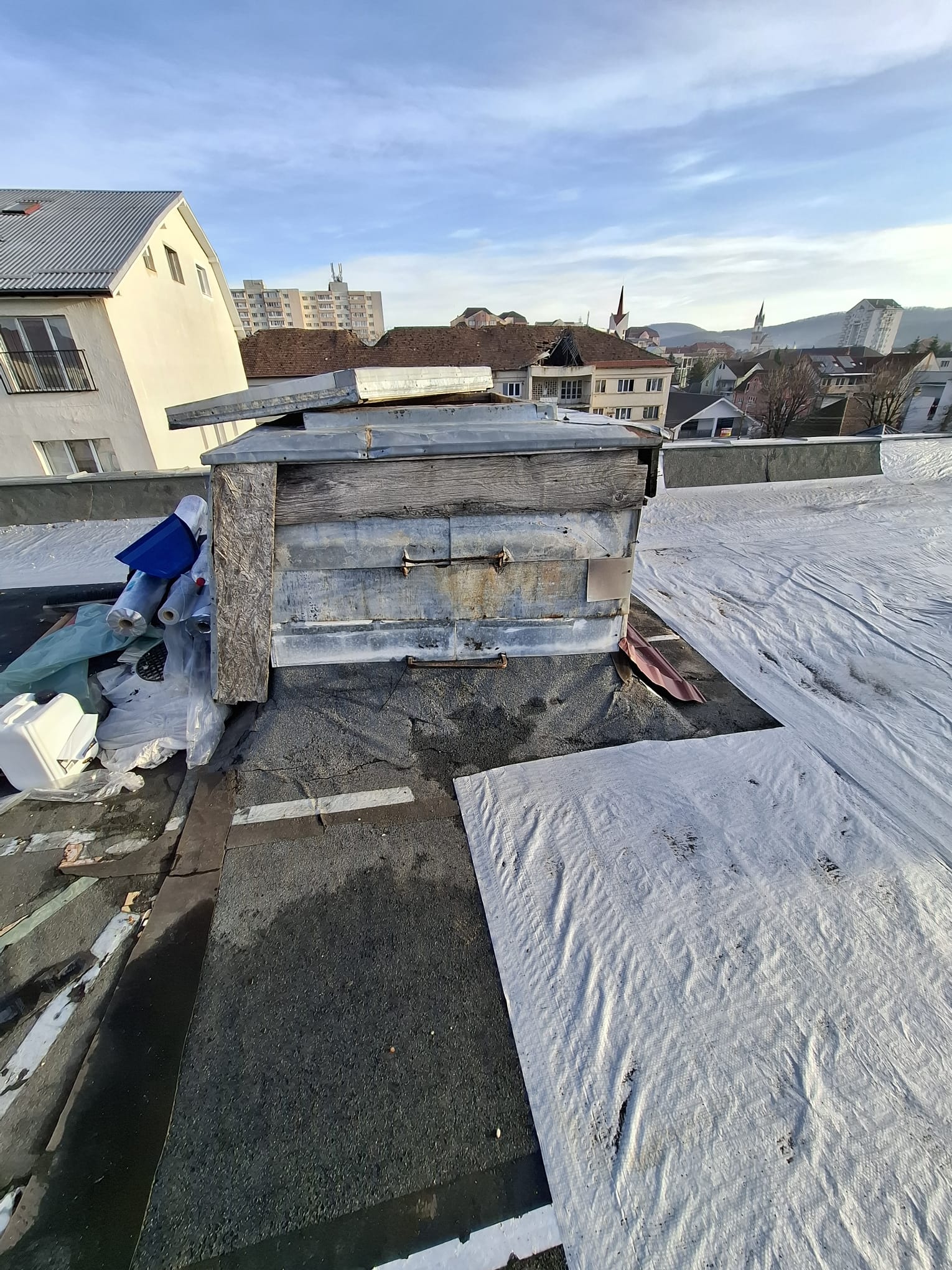 Bănuiala ei s-ar părea a fi reală. Lucrările de izolare a acoperișului blocului s-ar fi făcut cu o folie – barieră de vapori, prinsă în capse.