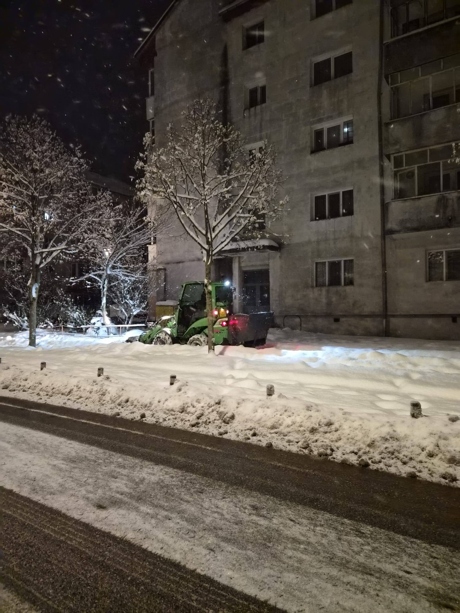„În municipiul Bistrița se înregistrează un episod de ninsoare moderată, iar echipele de intervenție sunt mobilizate încă de azi-noapte. Toate utilajele sunt în teren și acționează continuu pentru degajarea zăpezii și împrăștierea materialului antiderapant, astfel încât circulația să se desfășoare în condiții de siguranță. De asemenea, voluntarii SVSU au fost mobilizați pentru intervenții în zonele trecerilor de pietoni și a unităților de învățământ, pentru asigurarea accesului pietonal”, precizează primarul Bistriței, Gabriel Lazany.