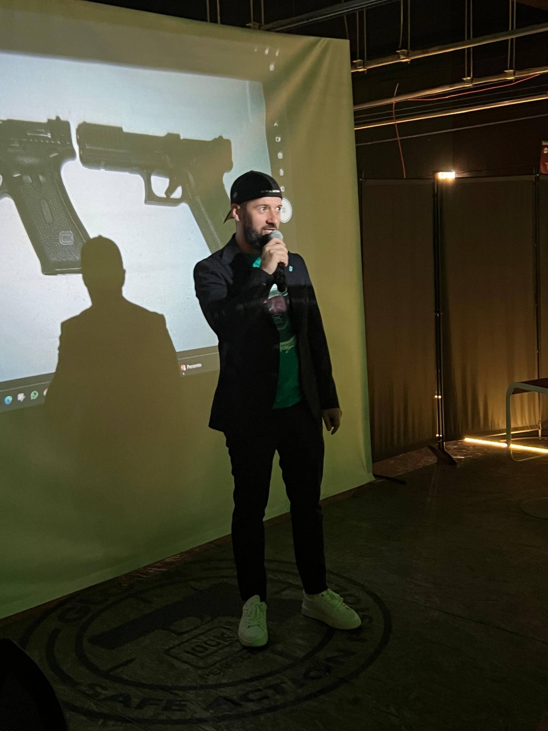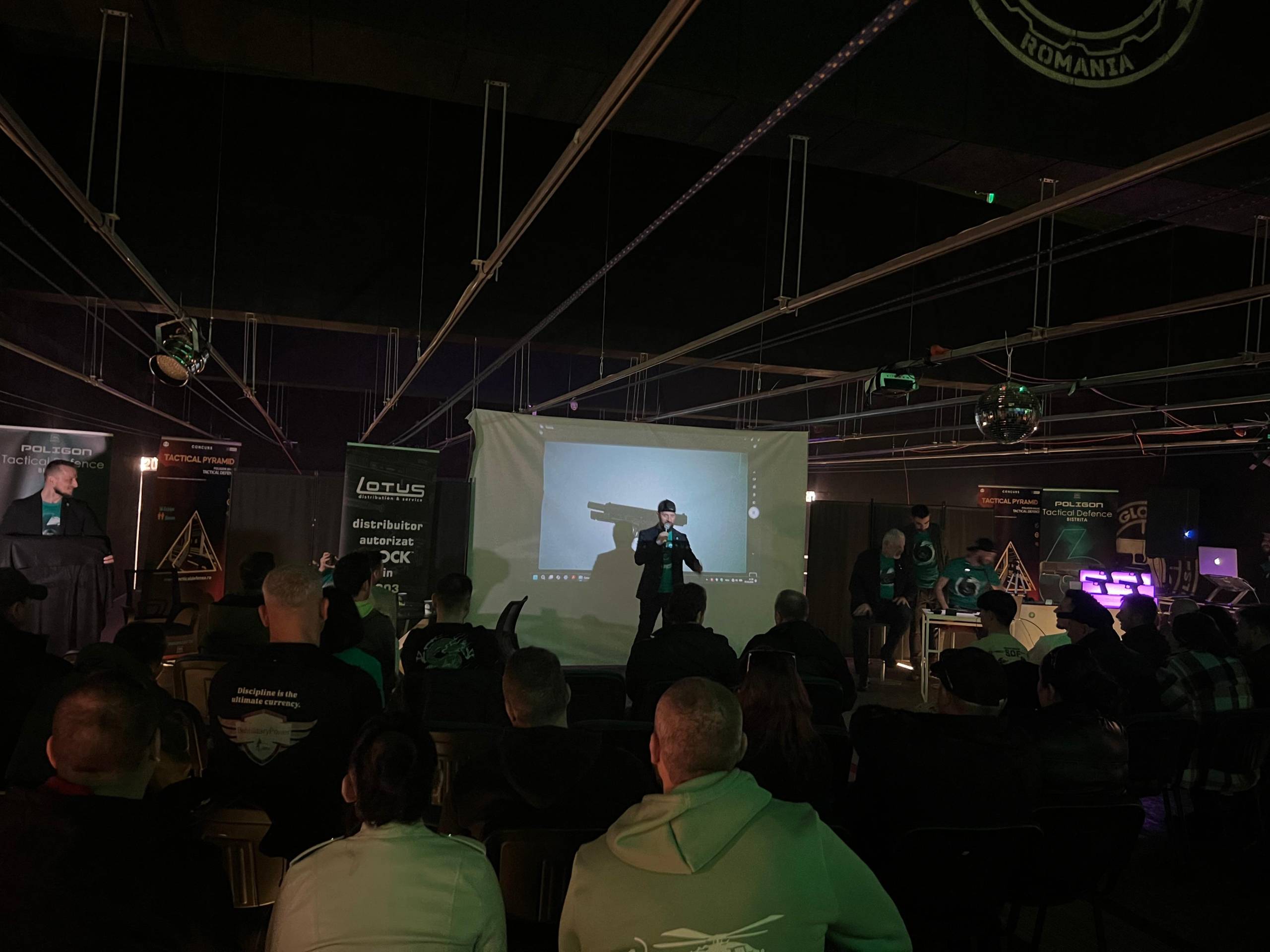 O adevărată enciclopedie a armelor, Agripa Popescu, importator oficial Glock România încă din 2003, le-a vorbit celor prezenți despre ce aduce nou această armă și de ce este mai bună decât generația mai veche.