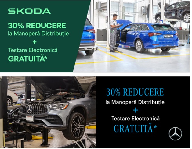 *Oferta este valabilă până la 30 noiembrie 2025 și se adresează exclusiv automobilelor Mercedes-Benz și Škoda. Se aplică termene și condiții și nu este valabilă pentru clienții cu contract de service activ.