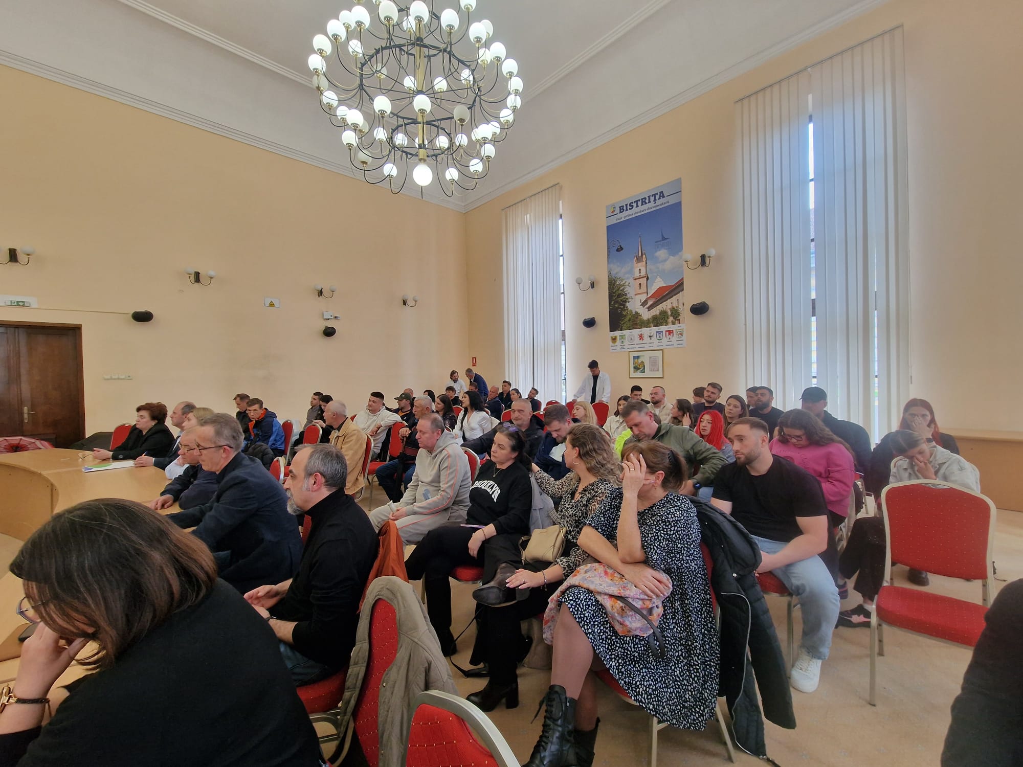 Zeci de bistrițeni au fost prezenți astăzi la Primăria Bistrița, pentru dezbaterea publică privind interzicerea sălilor de joc de noroc. Majoritatea dintre cei prezenți au fost operatori economici sau angajați ai acestora.