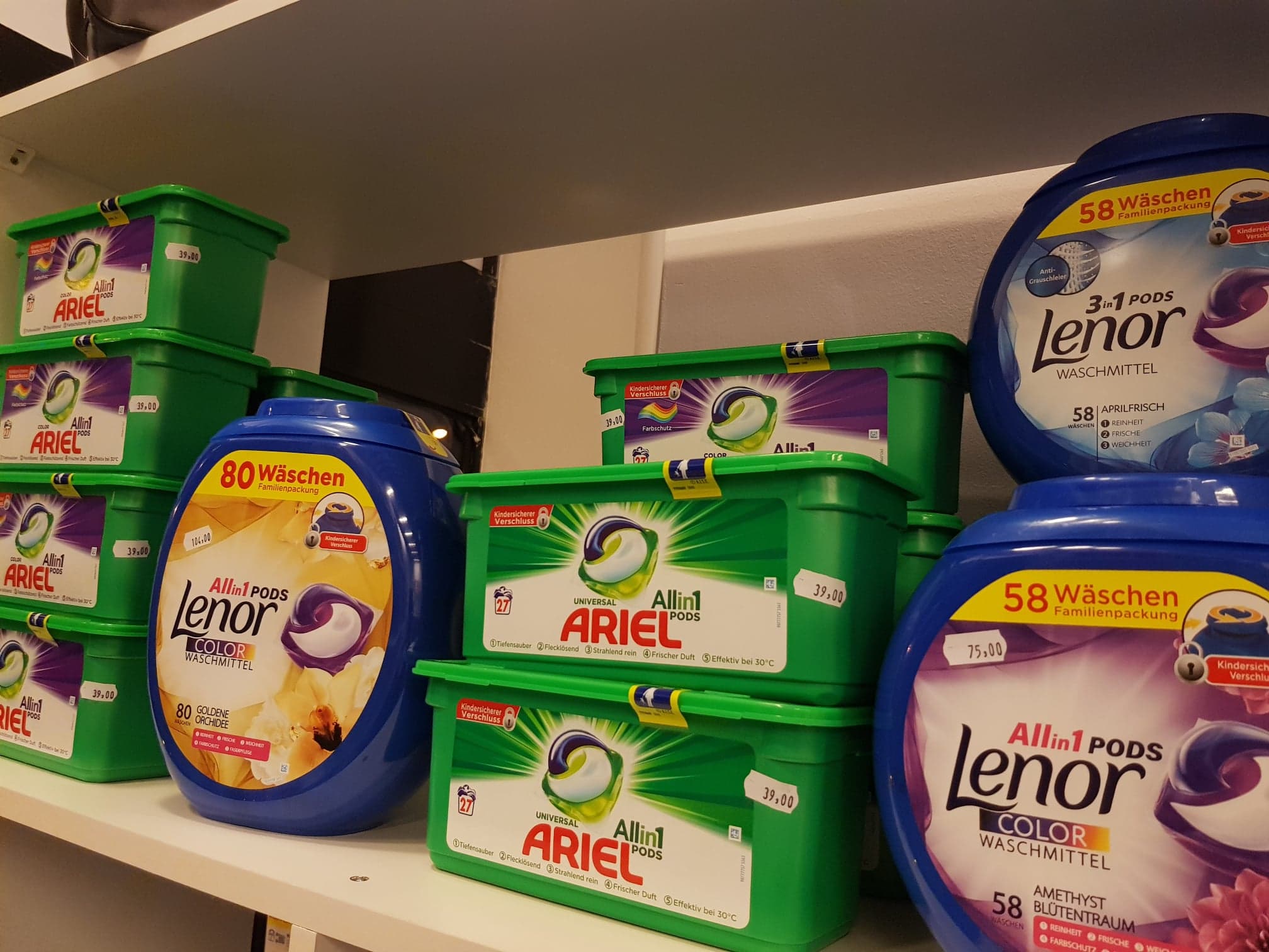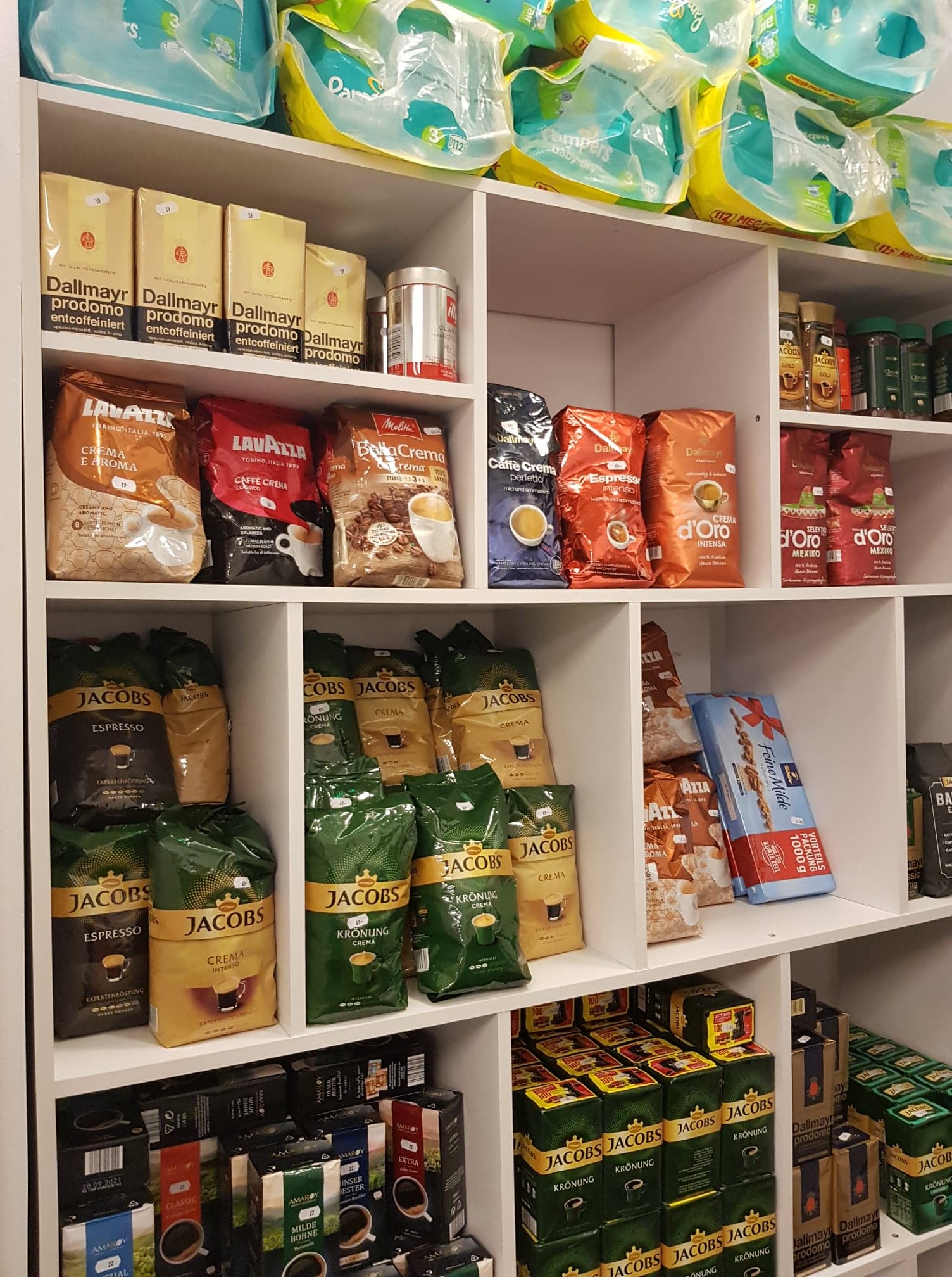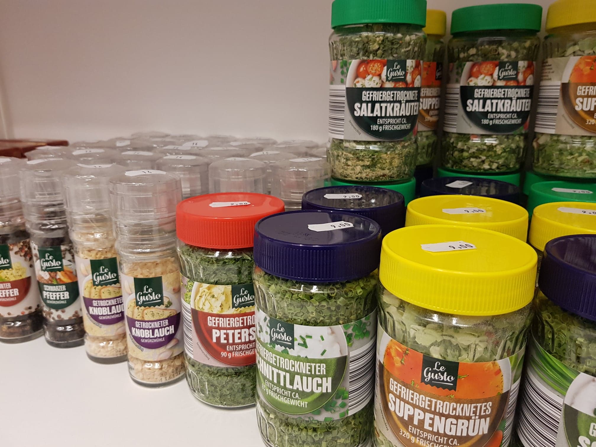 Detergenții sunt iarăși în stoc suficient cât să ajungă tuturor, iar la raftul cu conserve, ierburi și mirodenii, trebuie să vă luați timp să studiați toată oferta dacă nu cumva știți produsele din Germania.