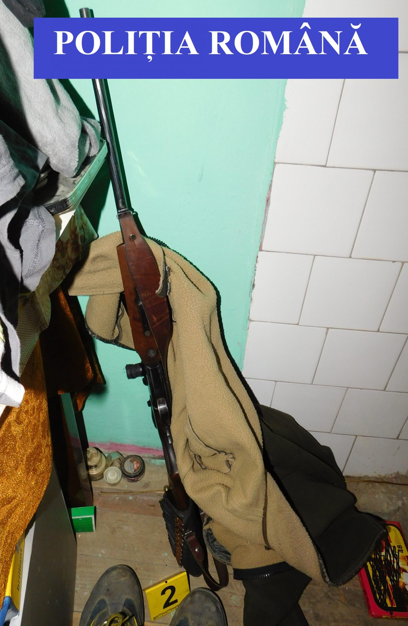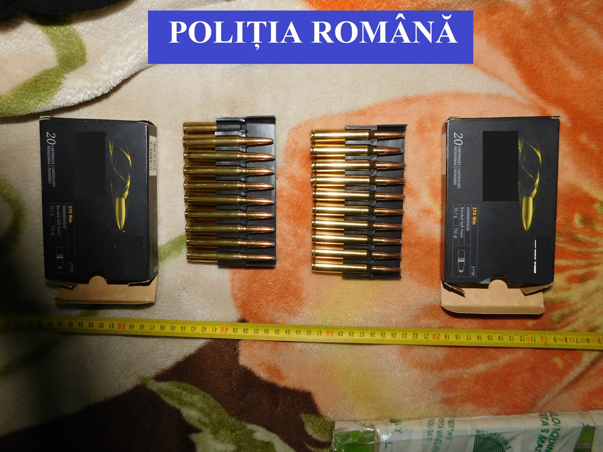„Cu ocazia percheziției, au fost descoperite și ridicate două arme letale cu glonț, aflate în circuitul ilegal, 243 de cartușe cu glonț, deținute ilegal, un încărcător pentru armă letală, un dispozitiv pentru confecționat cartușe și 86 bucăți bile din plumb. Totodată, au fost ridicate în vederea continuării cercetărilor 12 trofee de mistreț, un trofeu de cervidă, 2 cuțite de vânătoare și un detector de metale, deținut fără autorizație”, se arată în raportul IPJ BN.