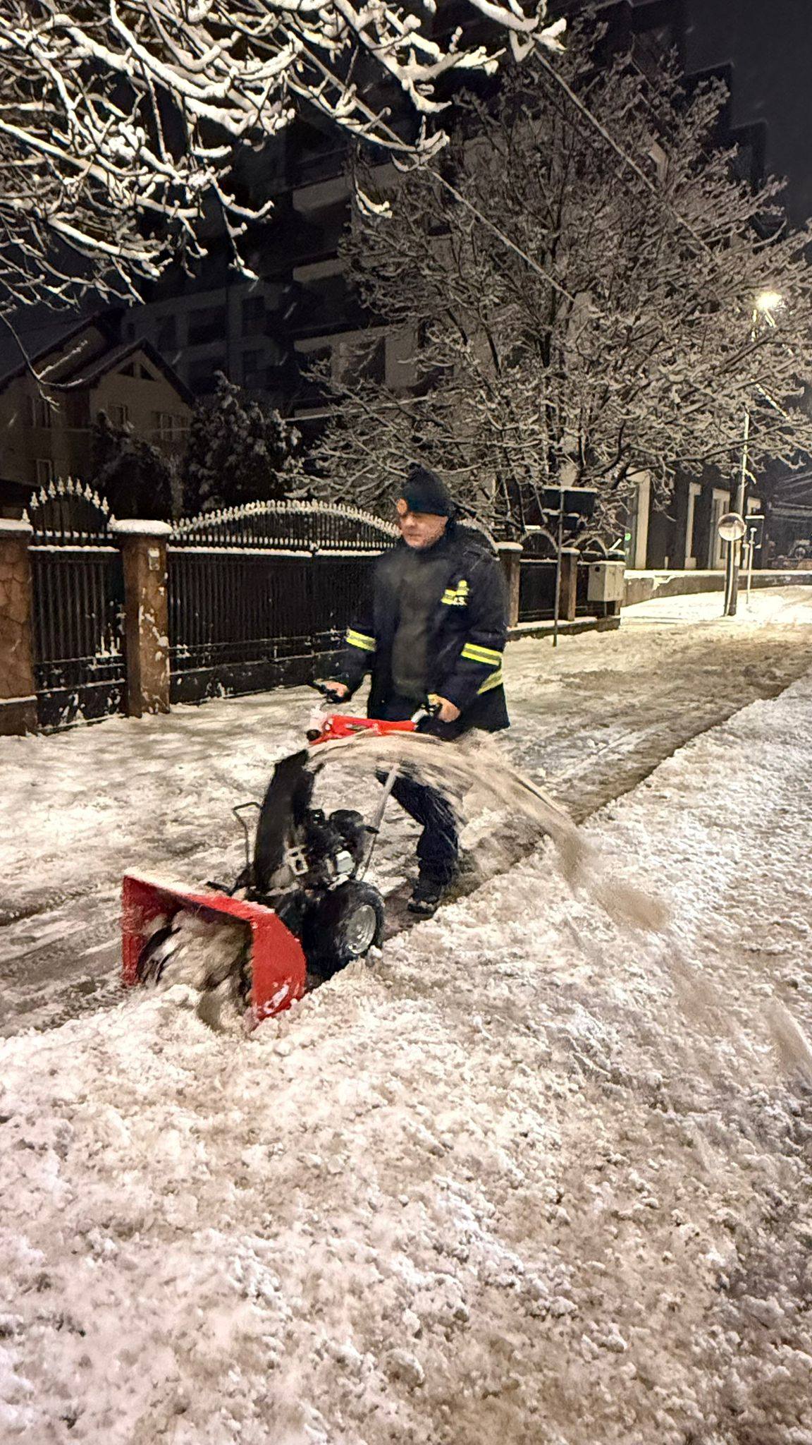 De asemenea, 42 de voluntari din cadrul Serviciului Voluntar pentru Situații de Urgență, 30 de bărbați și 12 femei, intervin pentru degajarea zăpezii de pe trotuare și treceri de pietoni.