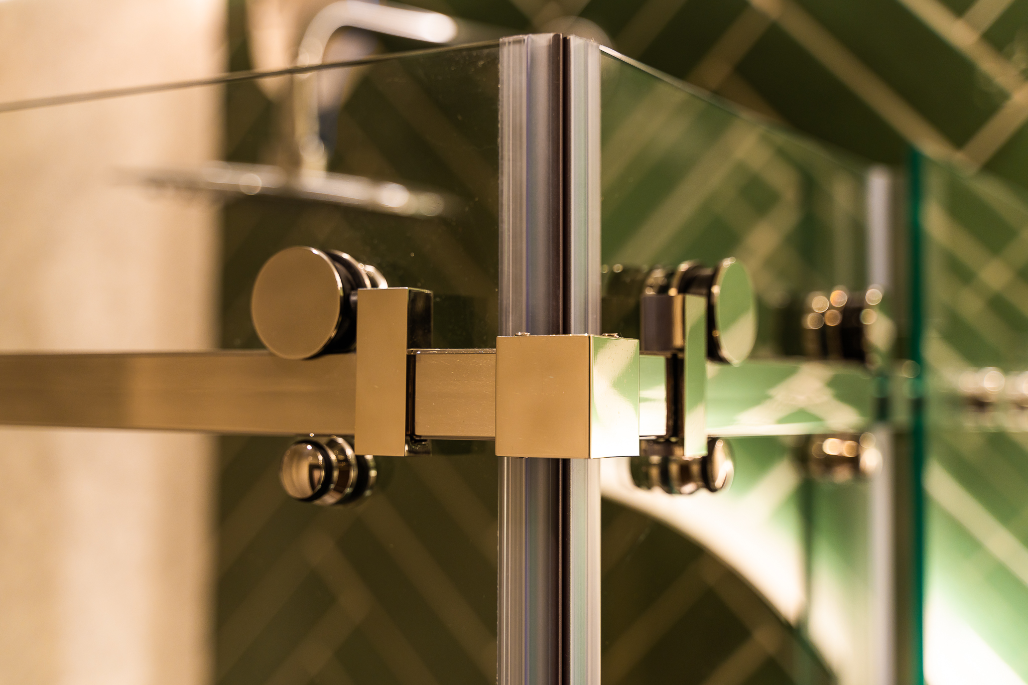 Băile hotelului sunt prevăzute cu cabine de duș elegante din sticlă transparentă, care „ajută” inclusiv la amplificarea vizuală a spațiului. În băi întâlnim și sticla printată, care se potrivește ca o mănușă cu celelalte elemente moderne utilizate.