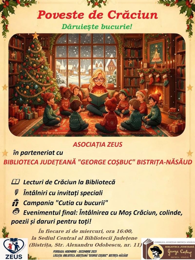În noiembrie și decembrie 2025, la Biblioteca Județeană din Bistrița are loc seria de activități culturale „Poveste de Crăciun. Dăruiește bucurie!”.