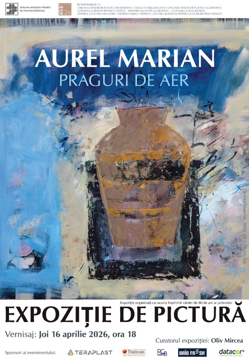 Praguri de aer se intitulează exppziția de pictură care va fi inaugurată mâine, 16 aprilie, la Galeria Arcade 24, de la ora 18.00. Artistul Aurel Marian își aniversează cei 80 de ani oferind comunității câteva dintre cele mai frumoase creații. „Pictura lui Aurel Marian te face să simți cu tot sufletul o altă calitate a timpului…”
