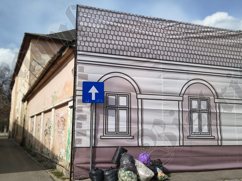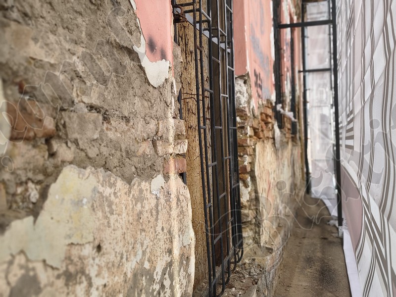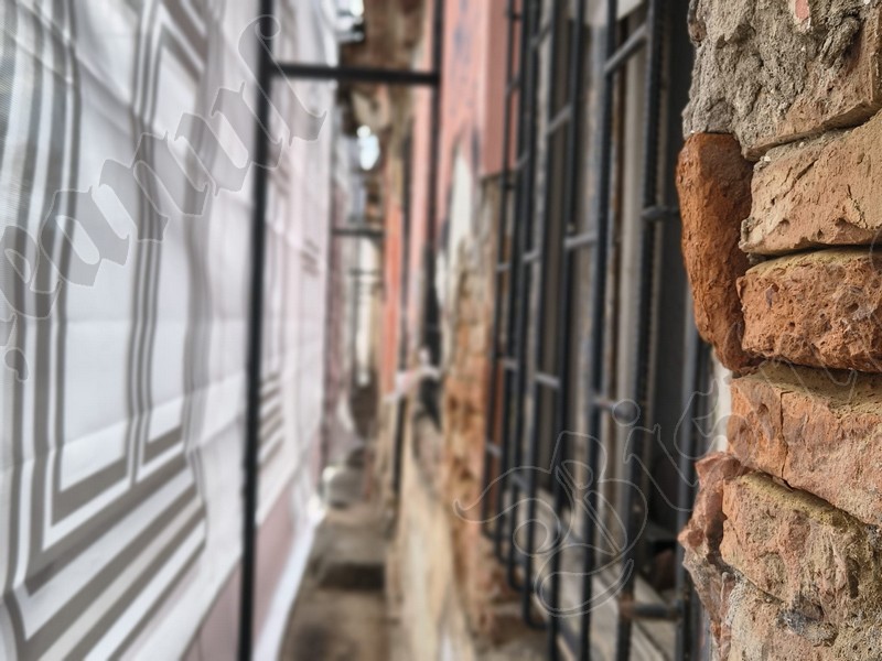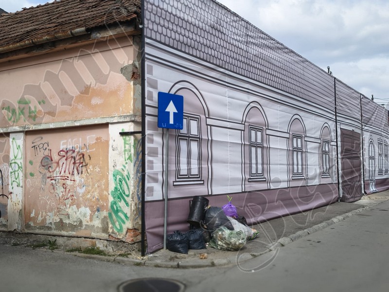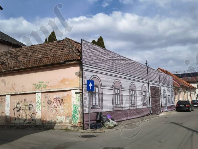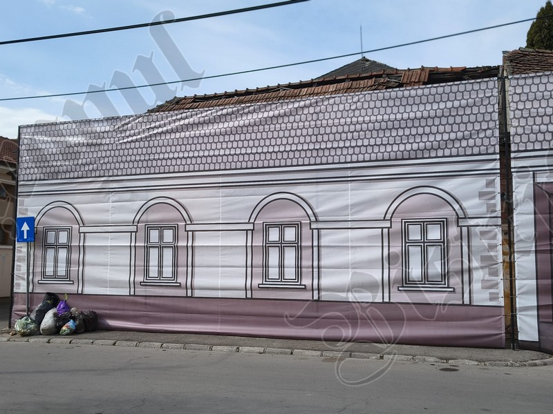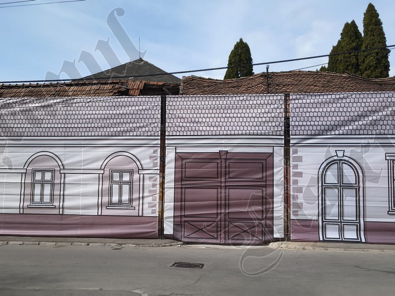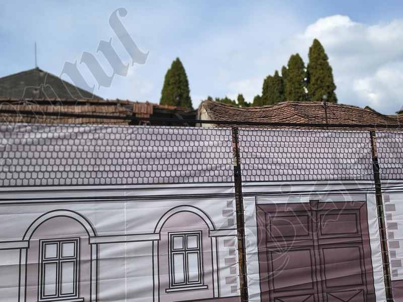 Până când vor fi câștigate finanțările europene, Primăria Bistrița a îngrădit ieri cu o plasă fostul Cinema 23 August / Omnia – latura de pe str. IL Caragiale:
