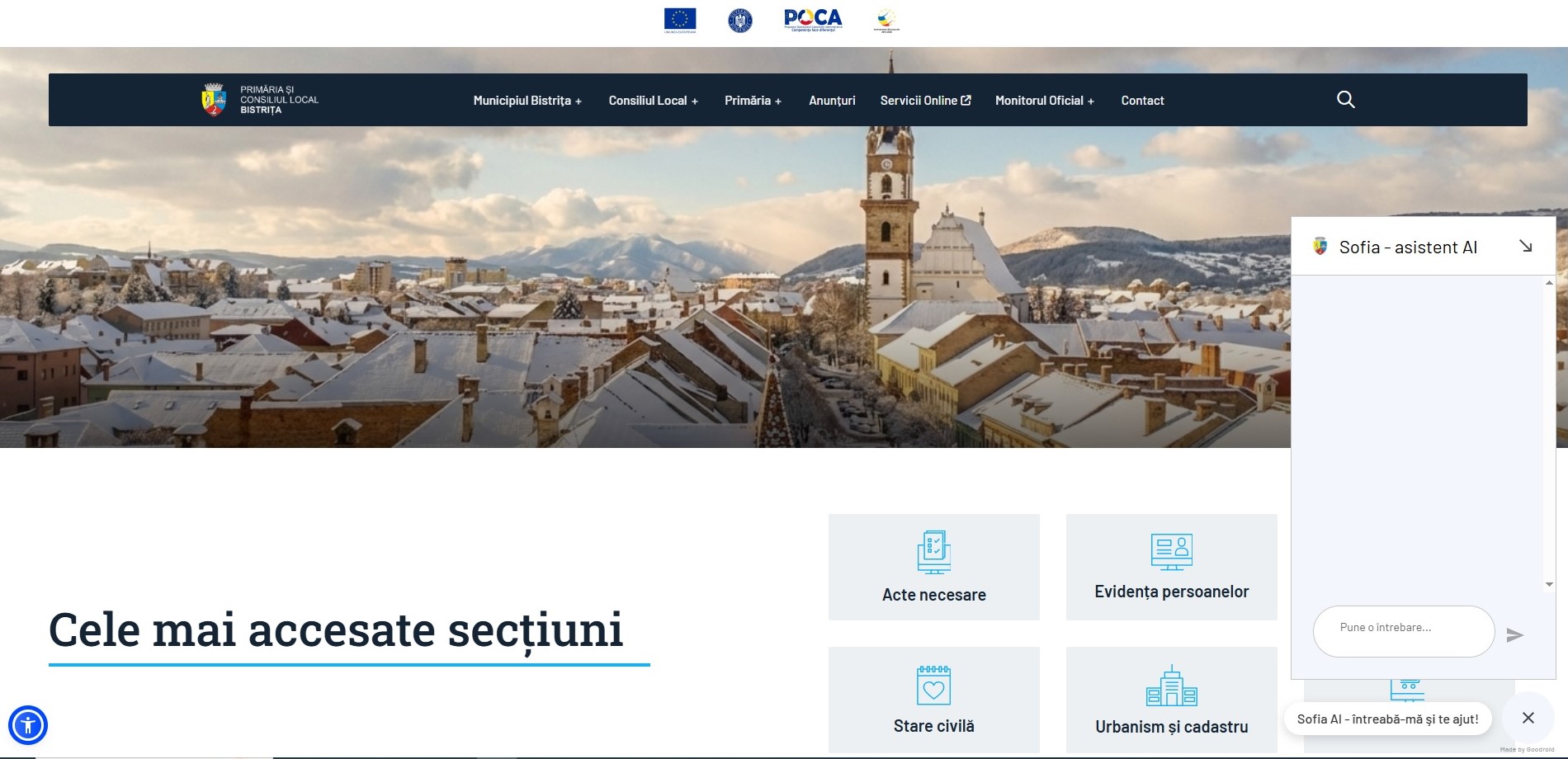 Începând cu data de 9 februarie 2026, pe site-ul primăriei este disponibil un nou serviciu: asistentul virtual Sofia AI.