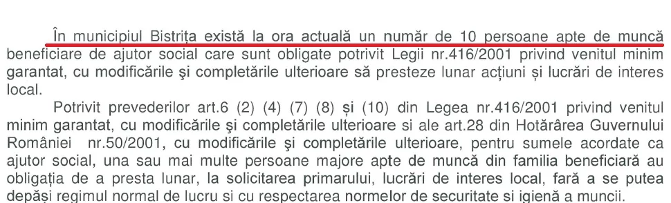 În proiectul care se va afla pe masa consilierilor, sarcinile trasate se adresează doar unui număr de 10 persoane. Dintre cei care beneficiază de acest ajutor, doar cei 10 ar fi apți de muncă.