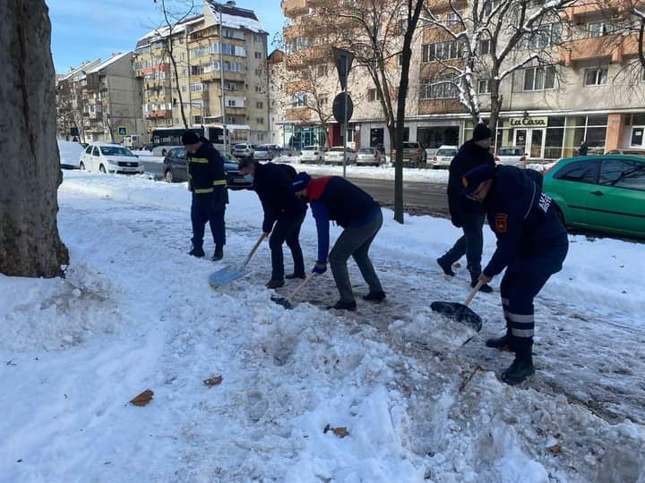 Mai mulți funcționari din Primăria Bistrița au ieșit, astăzi, la deszăpezit, după ce orașul a rămas sub nămeți în urma unor episoade de ninsoare abundentă din cursul zilei de ieri. În fruntea lor a fost primarul Ioan Turc și vicele Sorin Hangan.