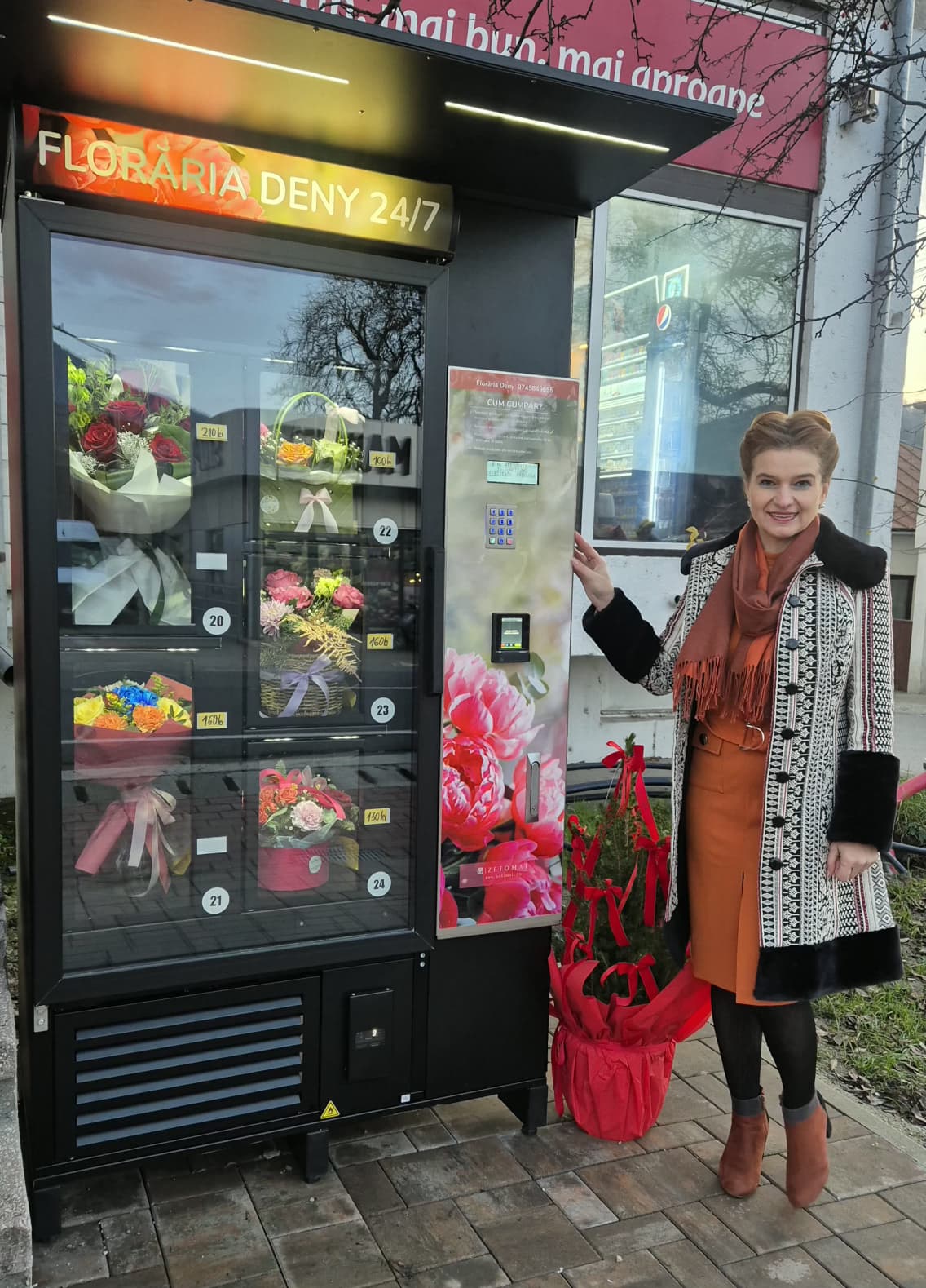 Iar pentru cei care au ratat programul florăriei și au nevoie de un buchet sau un aranjament spectaculos pentru a-l dărui cuiva drag, Florăria Deny a investit și într-un floromat, un dispozitiv modern, care eliberează rapid buchetul dorit, la orice oră din zi și din noapte, fiind disponibil și alimentat cu flori mereu.