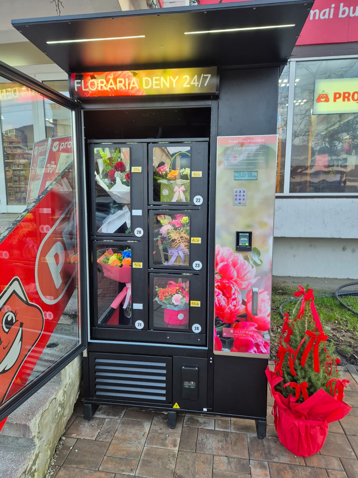 Așadar, gestul de a oferi un buchet superb de flori nu mai depinde de ora la care se închid florăriile! Tot ce trebuie să faceți este să ajungeți la floromatul Deny de lângă intrarea Profi, să alegeți buchetul care vă place și să-l oferiți persoanei dragi. Iar procesul durează un minut.