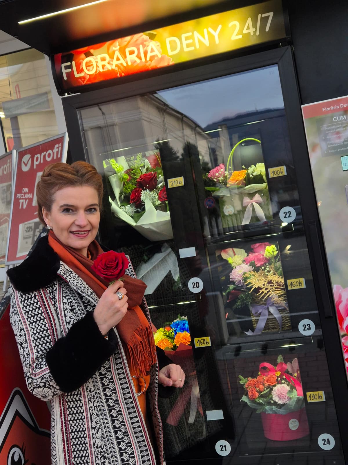 Așadar, gestul de a oferi un buchet superb de flori nu mai depinde de ora la care se închid florăriile! Tot ce trebuie să faceți este să ajungeți la floromatul Deny de lângă intrarea Profi, să alegeți buchetul care vă place și să-l oferiți persoanei dragi. Iar procesul durează un minut.