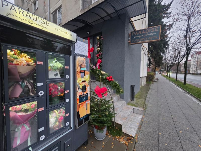 Primul floromat (tonomatul de flori) din Bistrița a ajuns de două zile la florăria PARADISE Younique Boutique, de pe Bulevardul Decebal, colț cu Zimbrului. A fost montat, setările au fost făcute și începând de aseară puteți cumpăra flori oricând, în Bistrița.