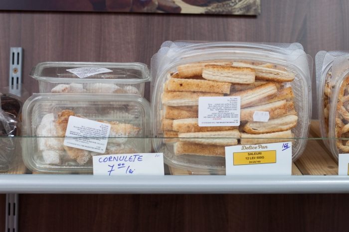 Găsiți aici și cornulețe, croissante, haioșe, saleuri, covrigei sau prăjituri cu brânză.