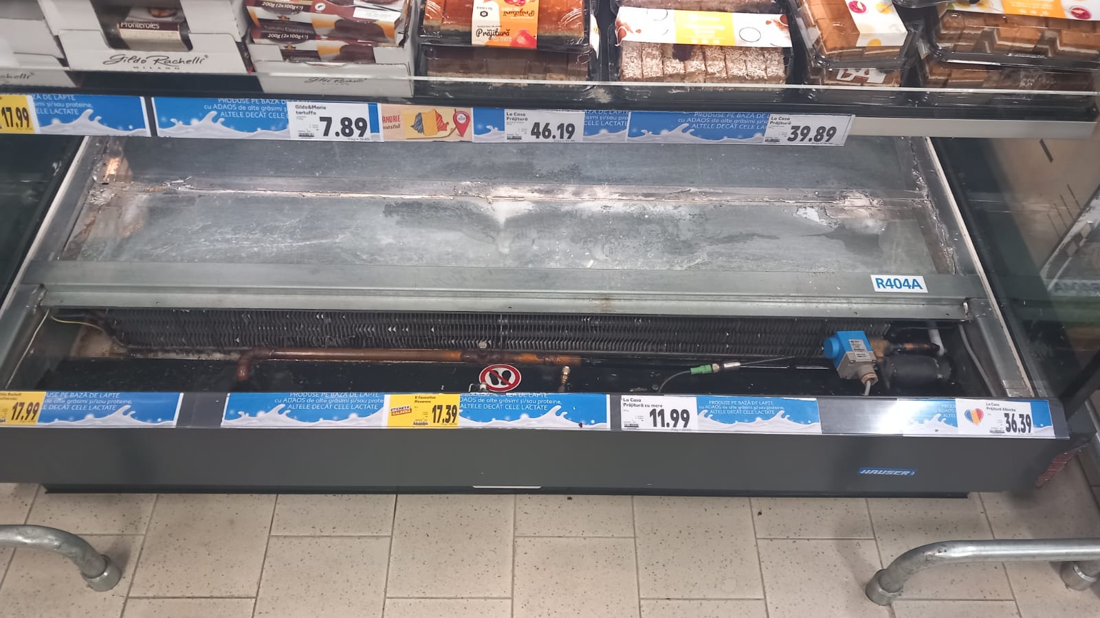 – utilizarea unei vitrine frigorifice neigienizate corespunzător în care erau depozitate produse refrigerate (prăjituri) în condiții improprii, prezentând urme de mizerie, rugină și scurgeri de lichide,