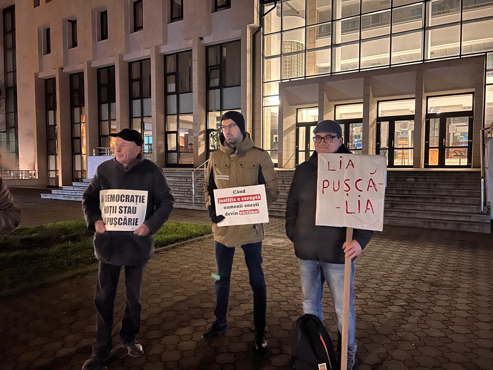 Dacă în țară protestele pentru independența justiției se desfășoară deja de câteva zile, la Bistrița abia astăzi s-a adunat o mână de oameni. Printre ei s-a numărat un activist de mediu și un fost consilier local al USR. Printre mesajele de pe pancarte s-au numărat: „Liapuscălia” sau „în democrație, hoții stau la pușcărie”.