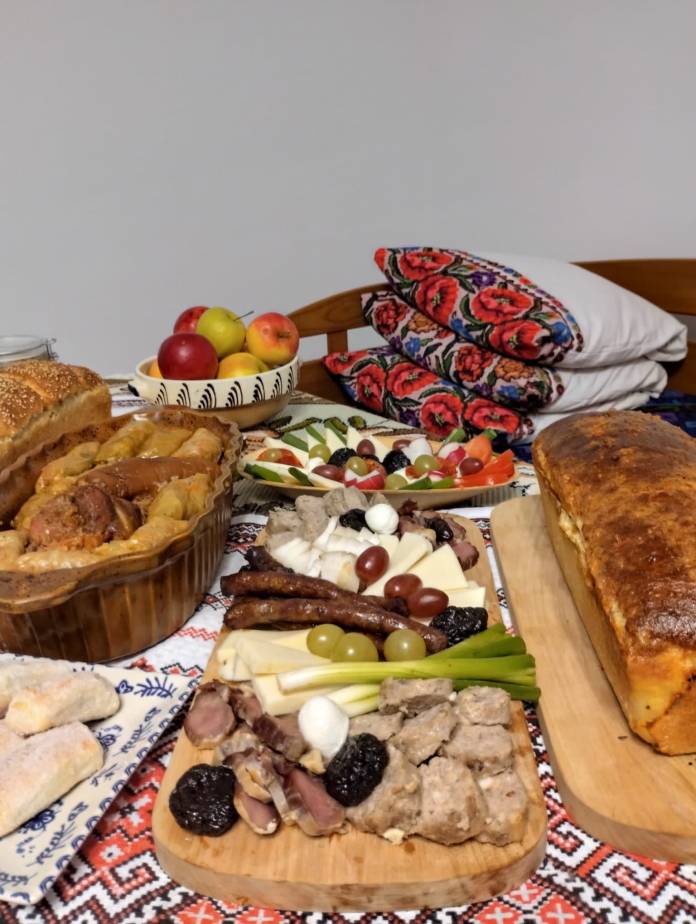 Pe masa ei găsiți platouri tradiționale, sărmăluțe, pâine cu brânză, cozonac și papanași, care se numără printre cele mai cerute produse.