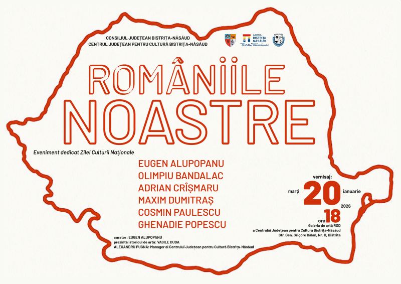 Expoziția de pictură Româniile noastre – dedicată Zilei Culturii Naționale – va fi inaugurată la Galeria ROD din Bistrița în 20 ianuarie, de la ora 18.00.