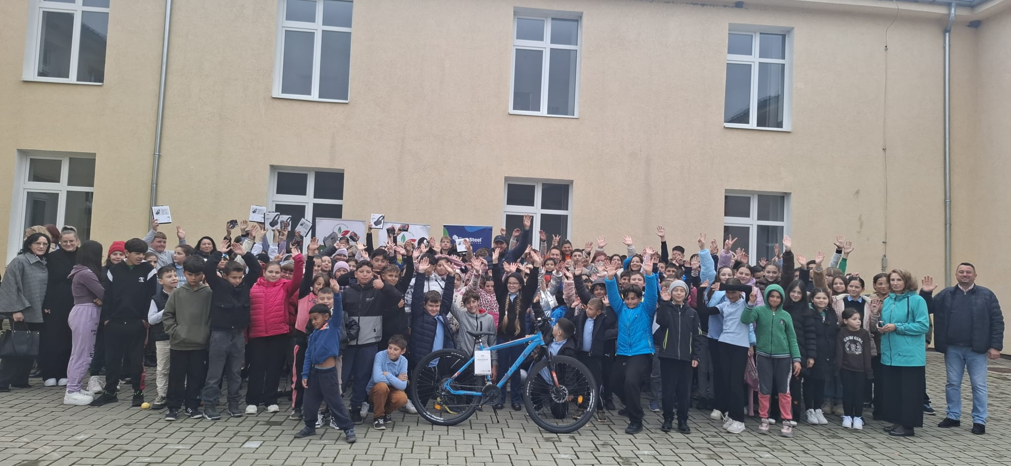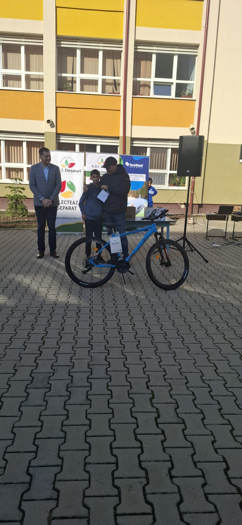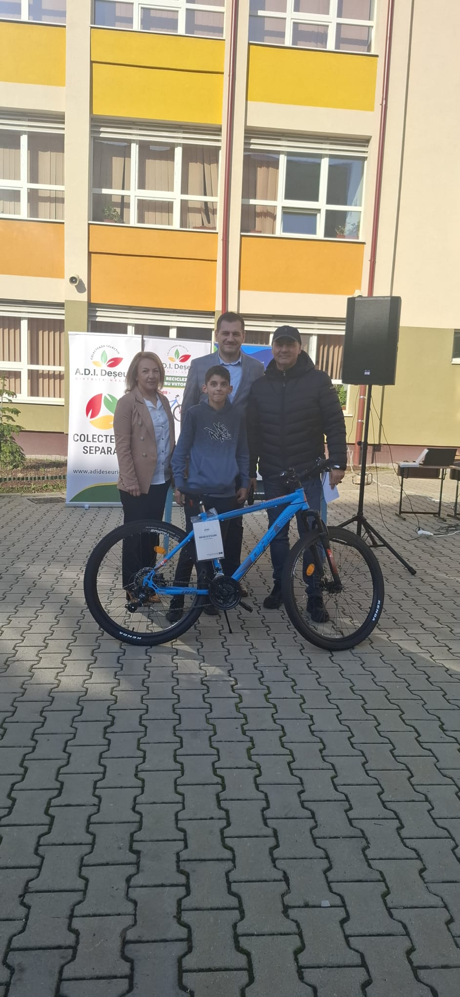 • Școala Gimnazială nr. 4 din Bistrița a adunat 1,5 tone de deșeuri reciclabile și Bicicleta a fost câștigată de elevul Isac Muzur cu 850 kg” au transmis reprezentanții ADI Deșeuri.