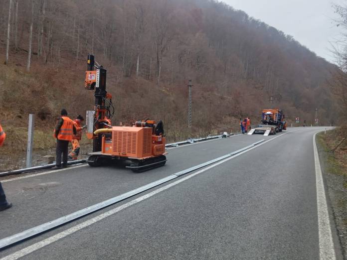 Direcția Regională de Drumuri și Poduri Cluj prin Secția Drumuri Naționale Bistrița continuă montarea parapetelor metalice de protecție pe DN 17C, între localitățile Fiad și Romuli.