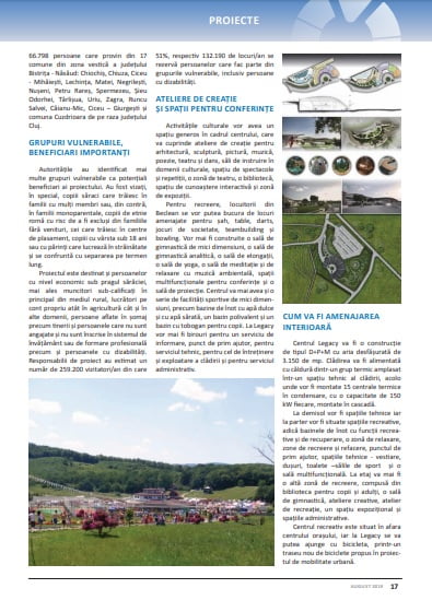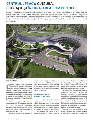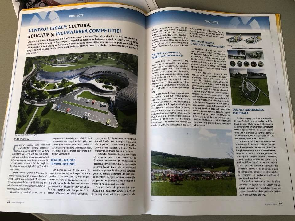 Regio, numărul din August al acestei reviste, îi alocă orașului de pe Someș două pagini. În acestea, explică despre „Centrul Legacy- un sistem unitar de servicii sociale integrate”.