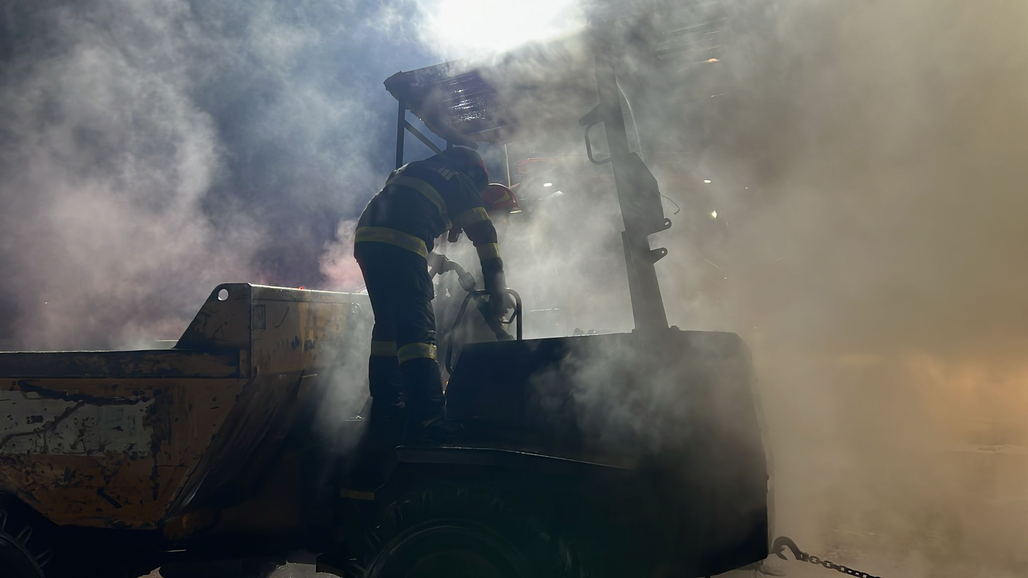 „Incendiul a fost lichidat. Acesta s-a manifestat la un dumper de 6 tone, care ardea generalizat la momentul sosirii echipajelor, și au fost afectate anvelopele unui autocamion (16 tone) parcat în apropiere. Pompierii au reușit să stingă incendiul și să protejeze camionul”, precizează reprezentanții ISU Bistrița.