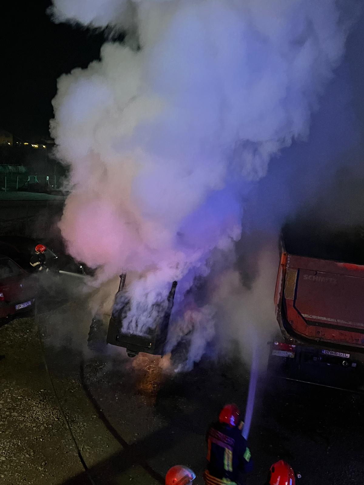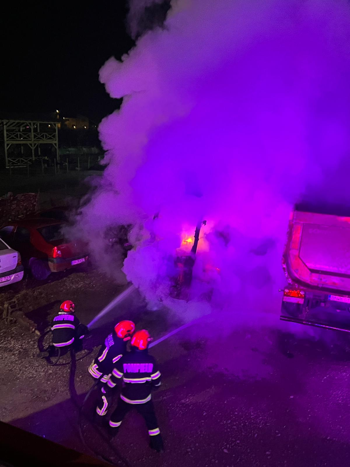 La sosirea echipajelor de intervenție, incendiul era generalizat și s-a extins la un autocamion de 16 tone, parcat în apropiere.