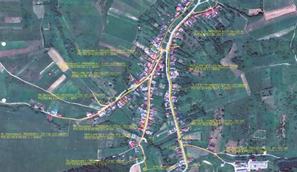 Sistemul de canalizare va fi compus din colectoare de canalizare menajeră în lungime de 5.900 m, trei stații de pompare, cămine de vizitare, cămine de racord, branșamente și Stație de epurare.