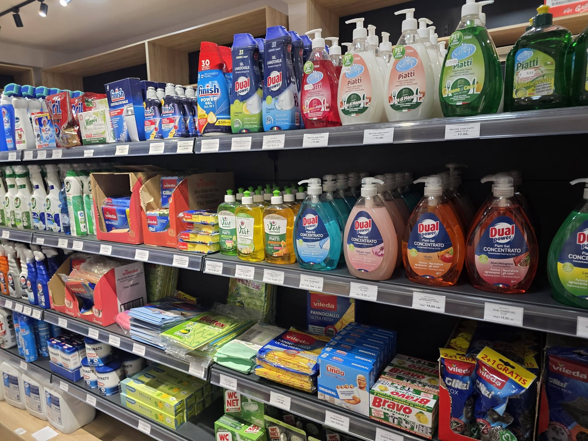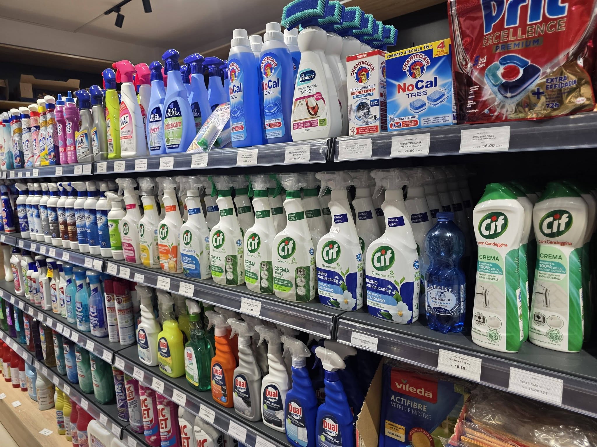 Iar dacă vreți să vă faceți casa lună și bec, magazinul este bine aprovizionat când vine vorba despre produse italiene de top – detergenți pentru haine și vase, soluții de limpezire și pastile pentru mașina de spălat, lavete de calitate, săpunuri lichide, soluții pentru bucătării și băi, șervețele umede, soluții pentru curățat geamurile, mobila și pardoseala, etc.