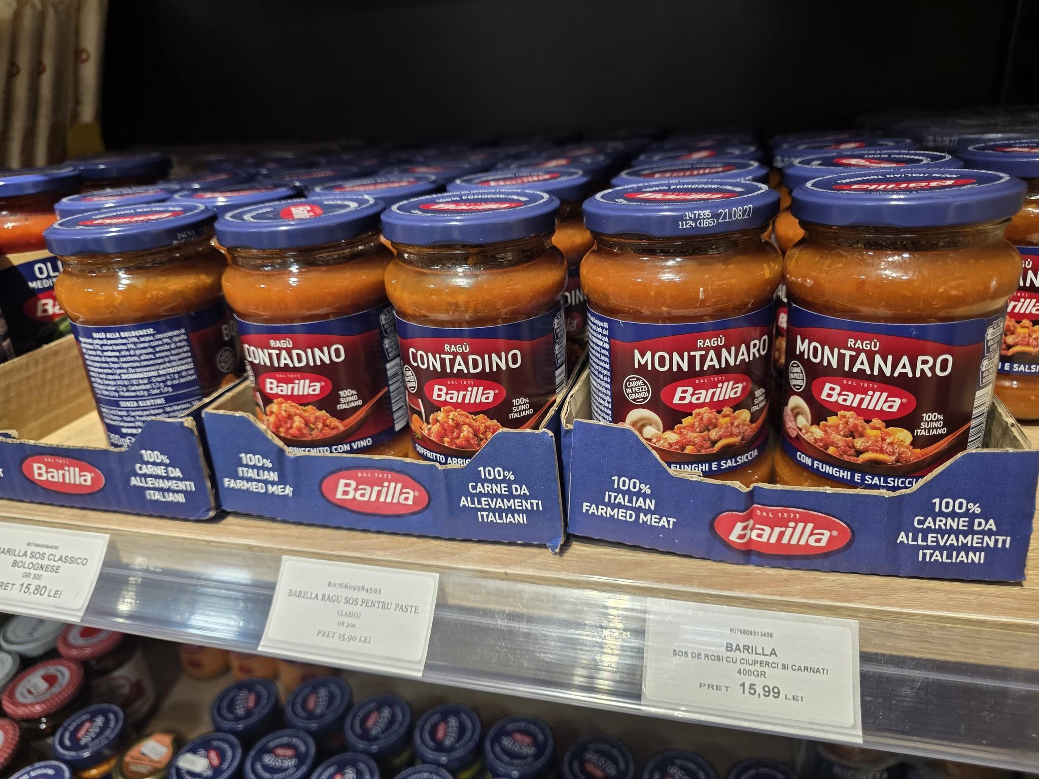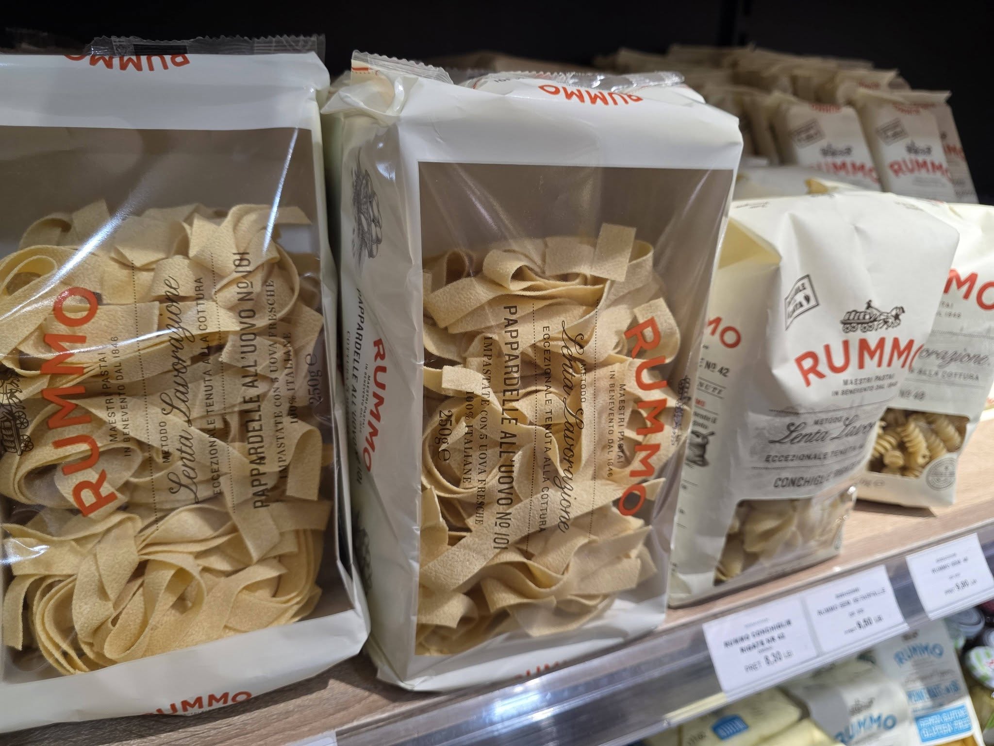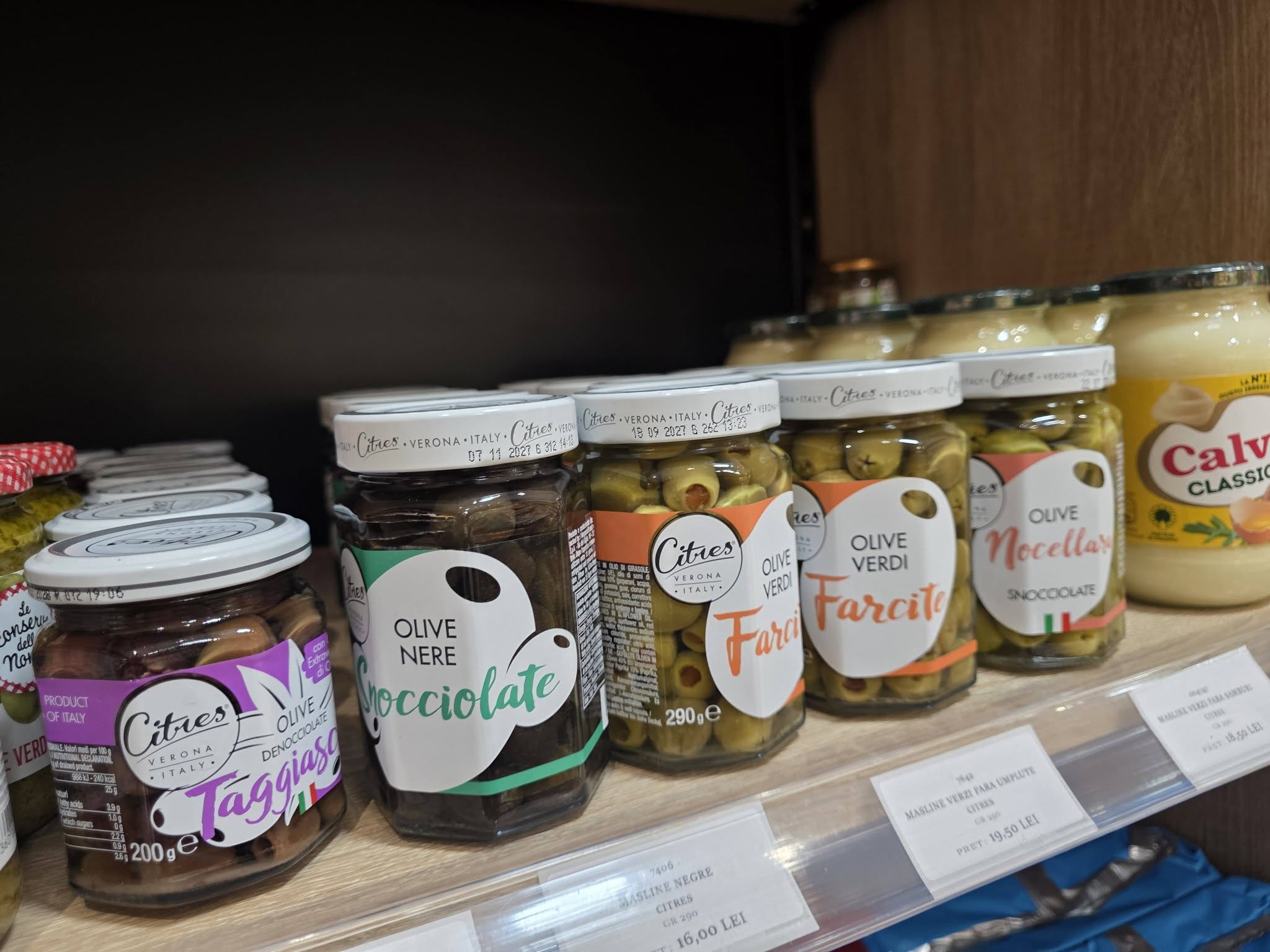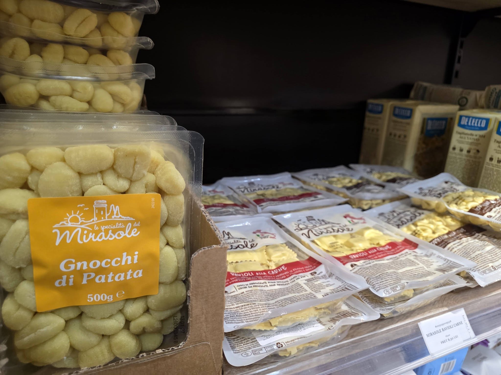 Bineînțeles, nu lipsesc ​deliciile fabricate în Italia: paste Barilla, sosuri autentice, pesto cu ardei, cu ton sau rustic, ulei de măsline, roșii uscate simple sau cu capere, gnocchi, făină pentru aluat de pizza, măsline, pate de măsline verzi, chipsurile sau biscuiții sărați.