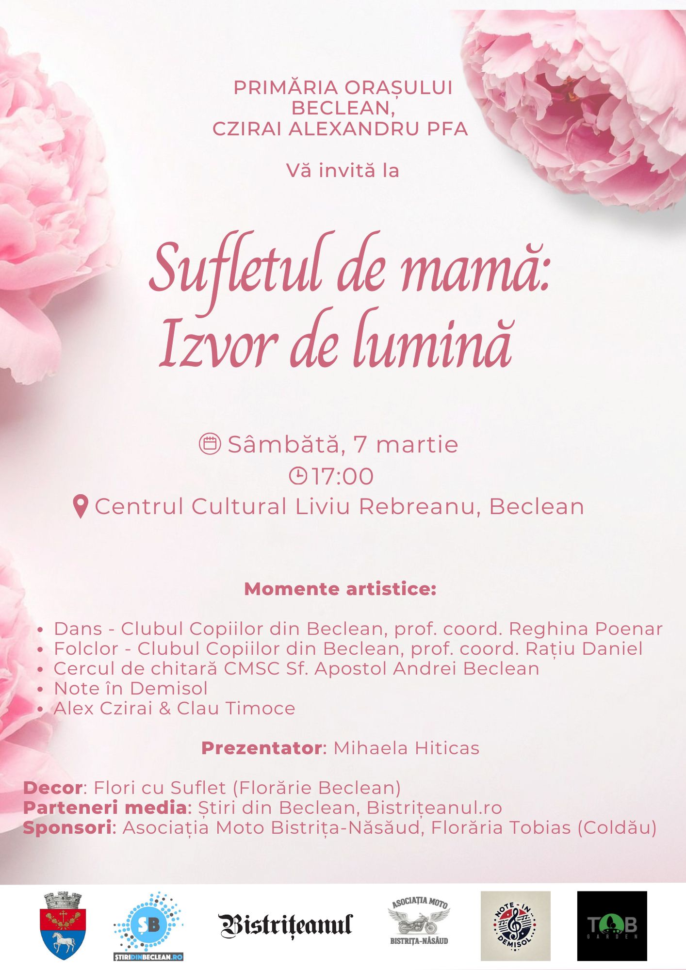 Cu ocazia Zilei Internaționale a Femeii, Primăria Orașului Beclean și Alex Czirai organizează un eveniment plin de emoție, dedicat celor care ne luminează viața cu bunătatea și puterea lor.