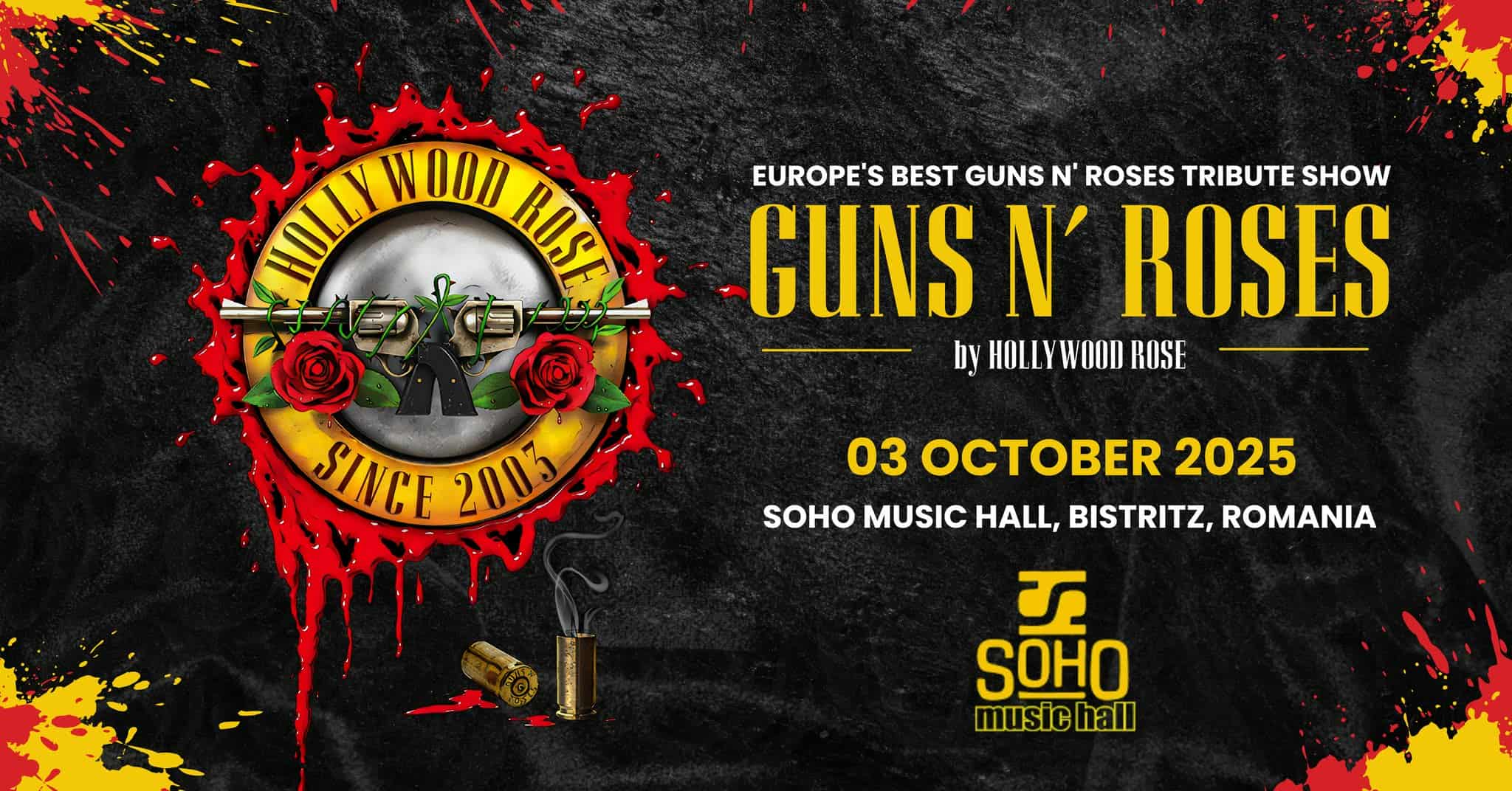 Fondată în 2003, Hollywood Rose a susținut peste 1400 de concerte live în 25 de țări europene. De-a lungul carierei, au avut onoarea să împartă scena cu trupe legendare precum Twisted Sister sau Billy Idol. În timpul spectacolului live, publicul va avea ocazia să asculte cele mai mari hituri Guns N’ Roses, inclusiv Sweet Child O’ Mine, Welcome to the Jungle sau Paradise City.