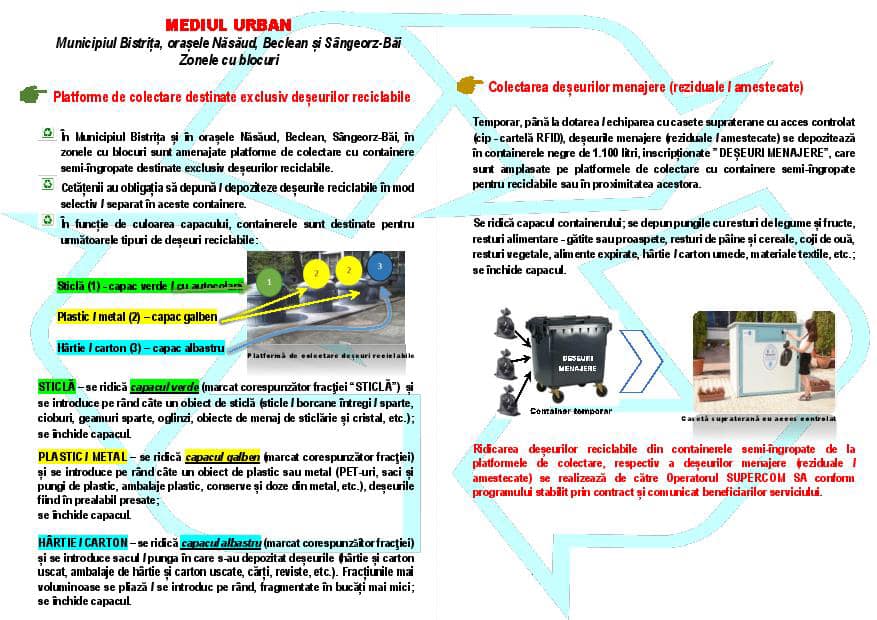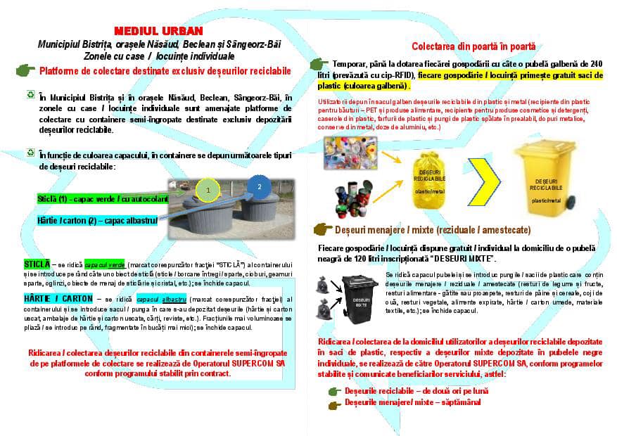 Pe lângă sacii galbeni, pentru deșeurile reciclabile, aceștia au primit și pliante cu instrcțiuni clare. Aceștia au fost informați ce pot arunca în sacii galbeni, ce pot arunca în tomberonul pentru deșeuri mixte, și cum dacă nu e respectată regula rămân cu gunoiul la poartă.