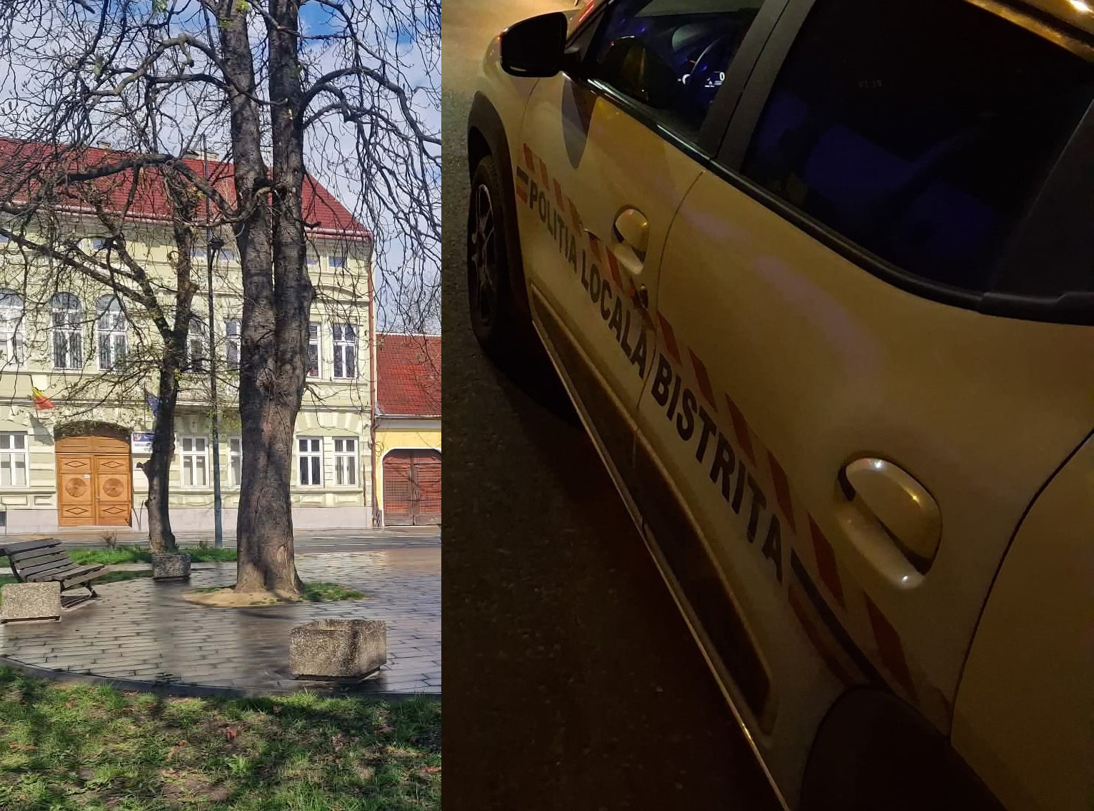Un apel la 112 anunța că un tânăr ar distruge băncile din parcul aflat în fața Sinagogii Bistrița.