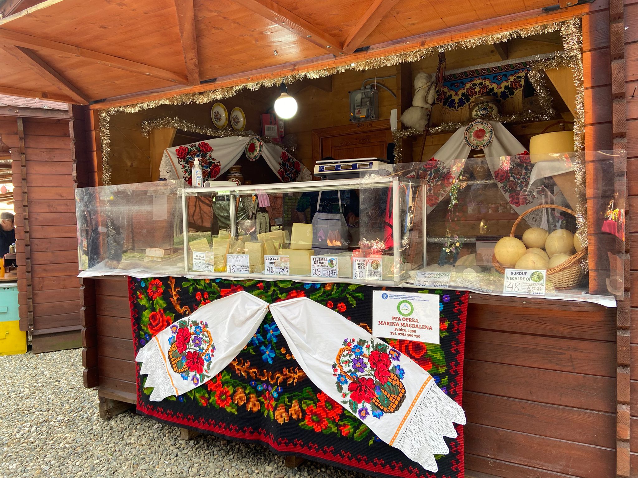 În același loc se găsesc produse lactate de vacă, oaie ori capră, dar și câteva mezeluri pentru masa de Paști.
