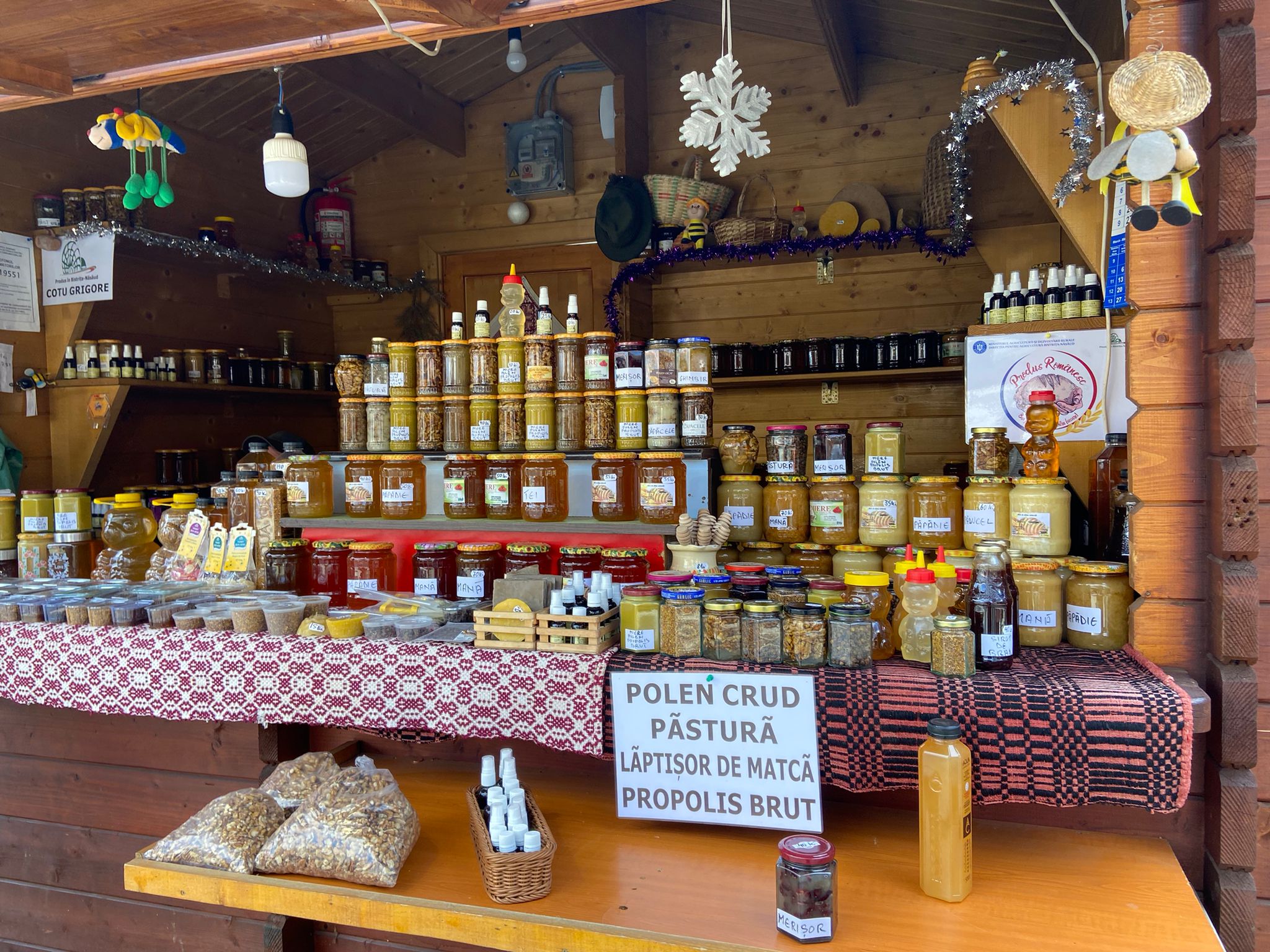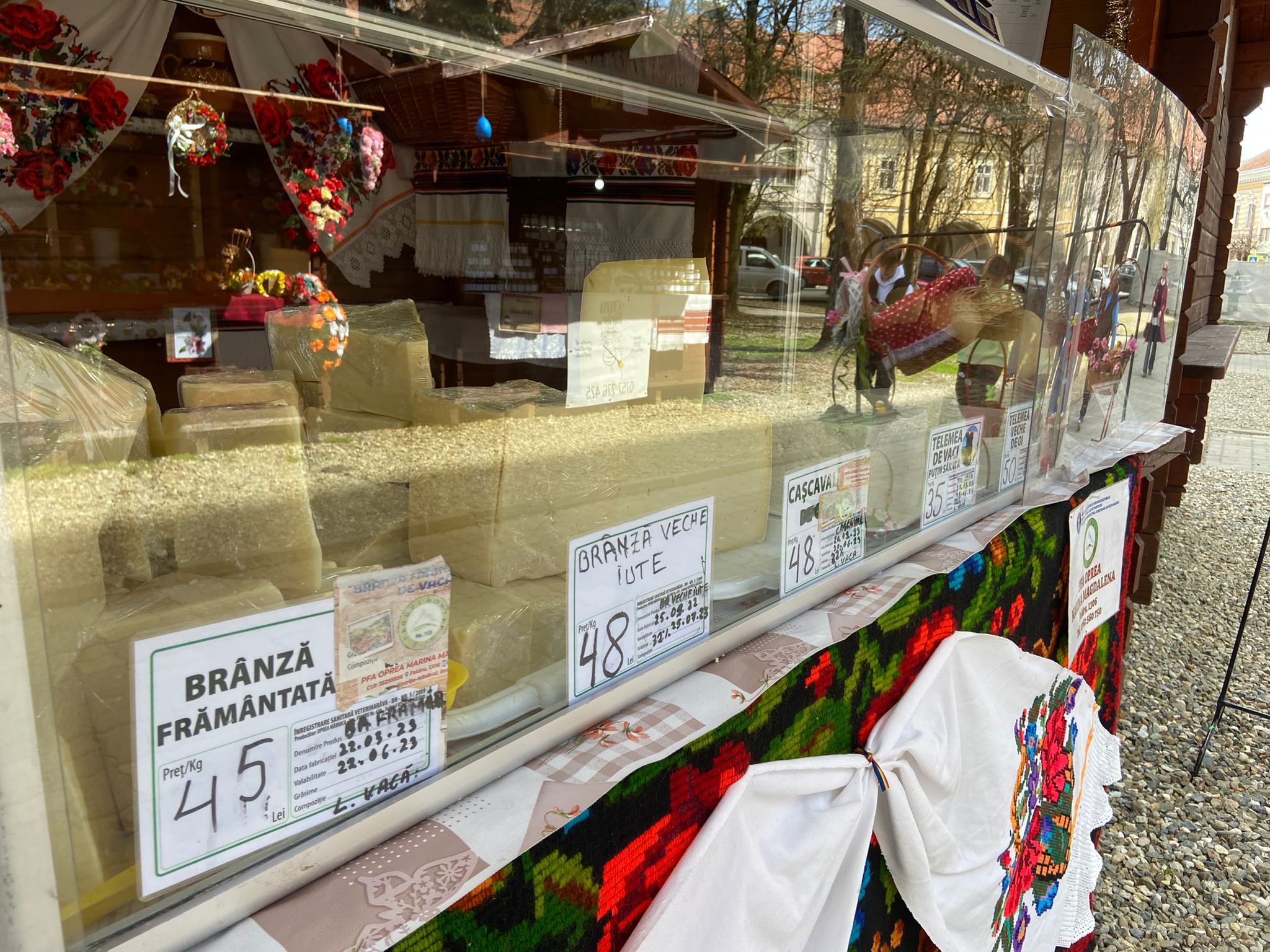Târgul din Centrul Bistriței abia a început, iar în jurul amiezii oamenii apăreau ușor la tarabele producătorilor locali și artizanilor care și-au aranjat marfa la căsuțele amenajate special pentru târg. Asociația Produs în Bistrița-Năsăud a transmis „Umple-ți masa cu bunătăți tradiționale și surprinde-i pe cei dragi cu creații inedite cu motive de sărbătoare”.