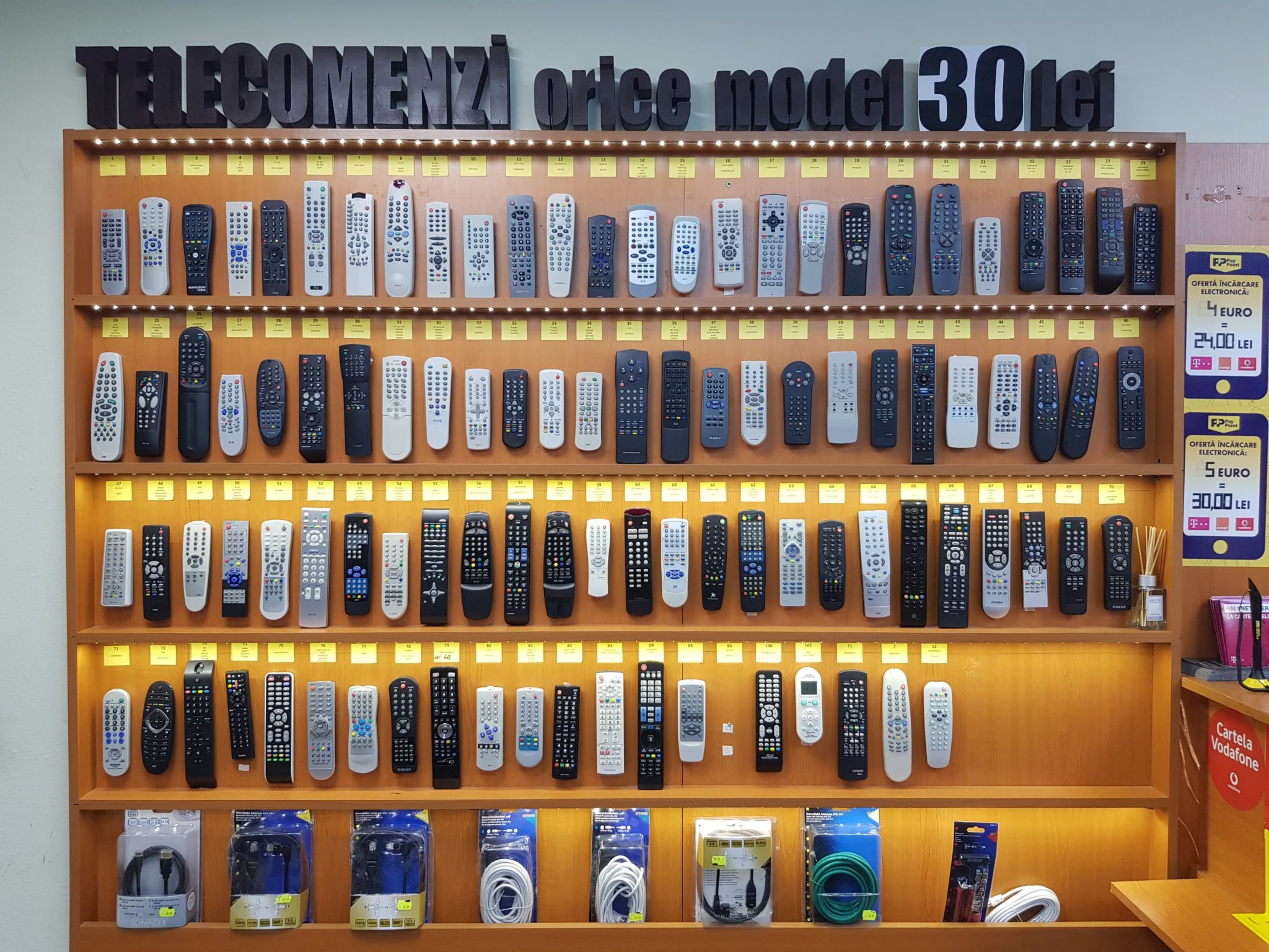 La reprezentanța Focus Sat de pe strada Iosif Vulcan, din Bistrița, îi găsiți pe băieții care se pricep la telecomenzi și care rezolvă orice caz, în câteva minute. Tot ce trebuie să le spuneți este modelul televizorului, îl găsiți scris pe eticheta din spate a aparatului, iar băieții pricepuți rezolvă cazul până voi dați o geană peste rafturile din magazin, unde găsiți accesorii pentru tot felul de aparate, dar și chestii inedite, pe care poate le căutați, dar nu știați unde să le găsiți. Prețul oricărei telecomenzi, indiferent de model, este doar 30 de lei.