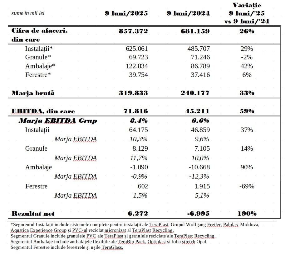 Rezultatele Grupului TeraPlast în primele nouă luni din 2025