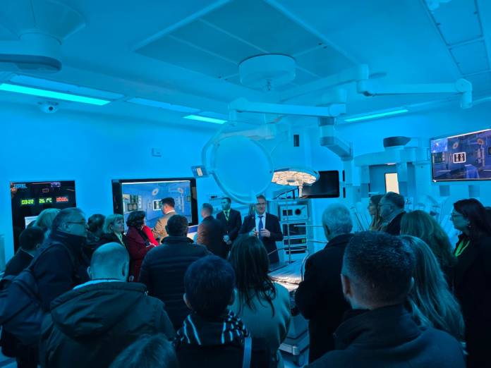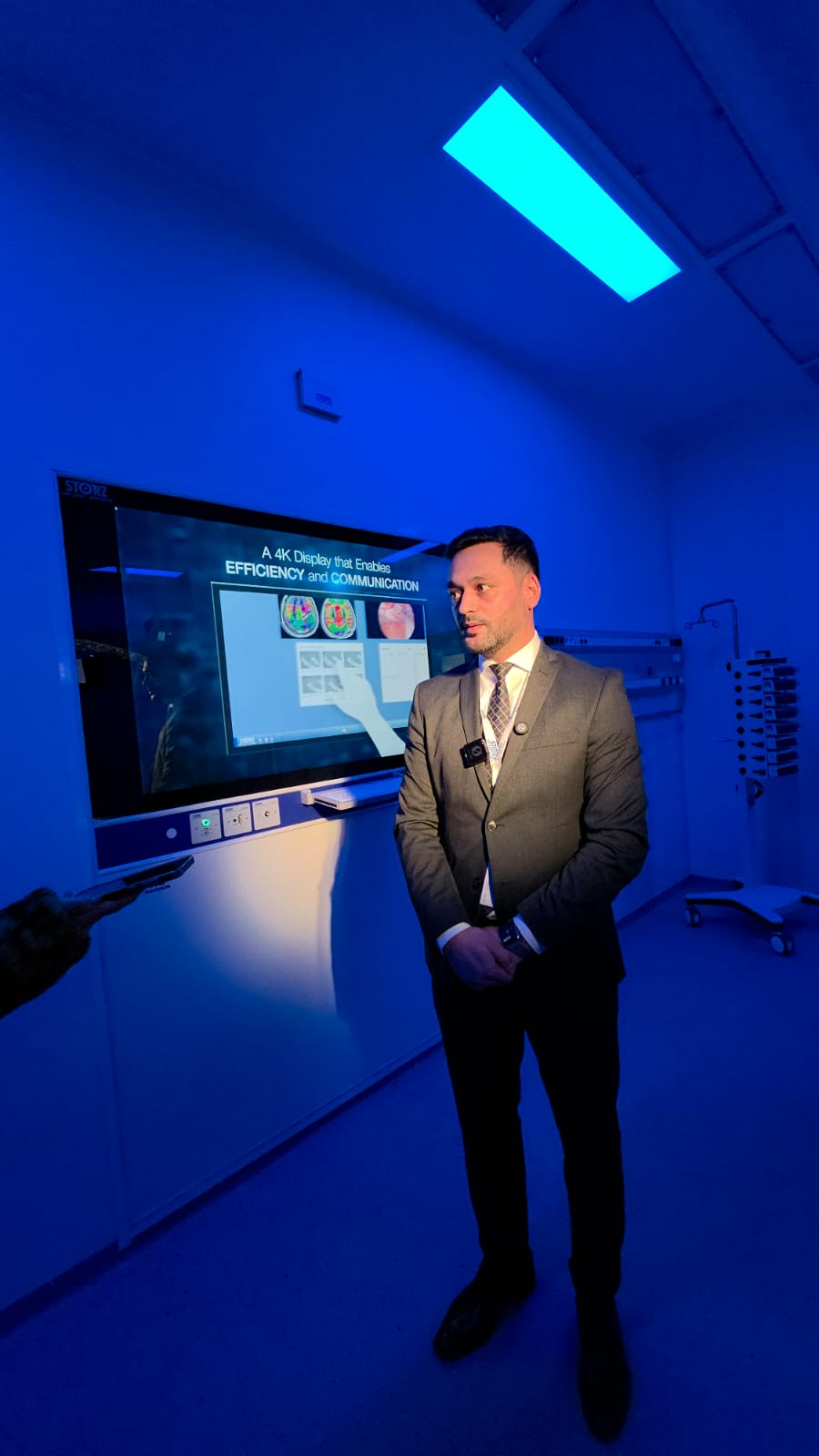 „Este singurul astfel de sistem de la noi din țară. Cea mai nouă soluție este prezentată pentru prima dată în mediul public spitalicesc. În acest moment, în țară există doar la spitalele private. Este cumva topul tehnologiei medicale, în ceea ce privește integrarea în sala de operație. (…)Este primul sistem de acest fel, este integrat în peretele blocului operator, după cum puteți observa. De la acest pupitru, medicii pot intra în interacțiune cu medici aflați în alte spitale, cu medici rezidenți care pot învăța procesul medical de la distanță”, spune reprezentantul firmei nemțești care a produs sistemul de telemedicină.