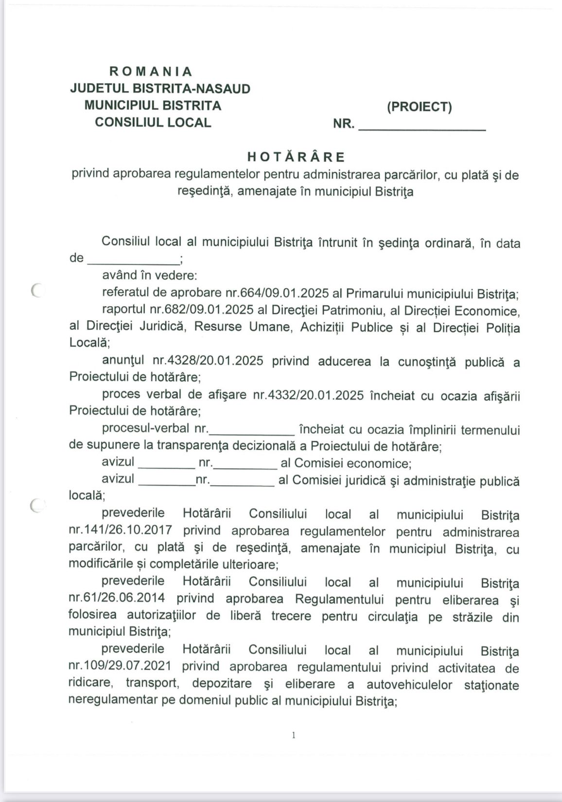 Noul regulament al parcărilor cu plată și de reședință a fost pus în dezbatere publică de Primăria Bistrița, înainte ca acesta să fie supus aprobării Consiliului Local. Noile modificări ar aduce o creștere cu 15% a veniturilor generate de locurile de parcare, deși bistrițenii vor da mai puțini bani pentru parcare.