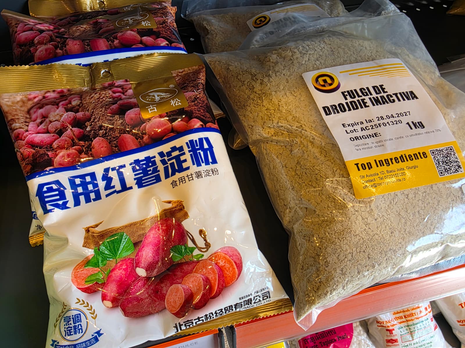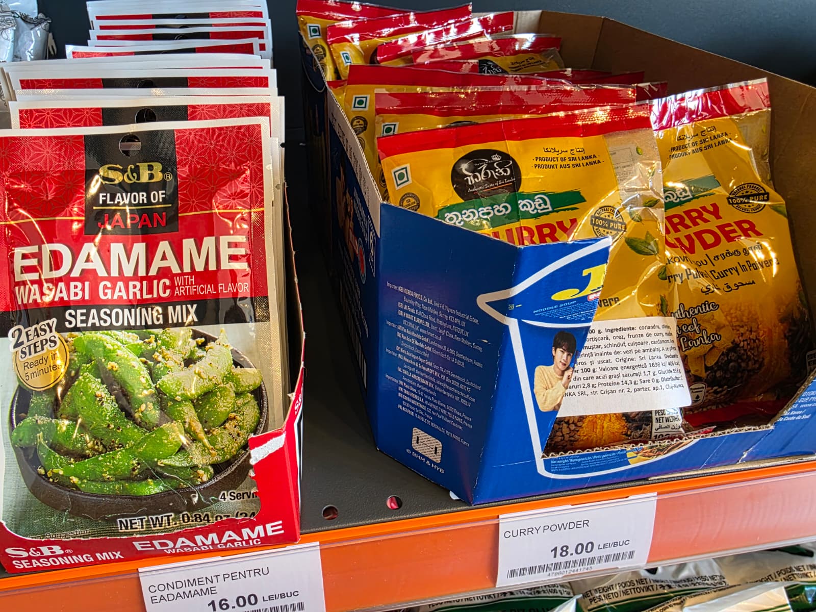 La Queen of Asia, pe rafturi găsiți de la piperul Sichuan (esențial pentru bucătăria chinezească), în variantele roșu, alb, negru sau mixuri echilibrate, curry, turmeric și anason stelat până la fulgi de usturoi, morcov deshidratat, ceapă caramelizată și mixuri de legume care transformă orice supă sau tocăniță.